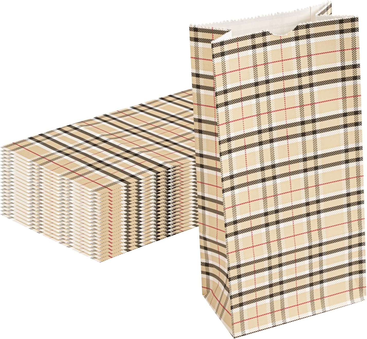- STYLISH DESIGN: With a plaid print, these paper bags boast a classic look that blends into any environment. These are great for taking food or other objects to any occasion!