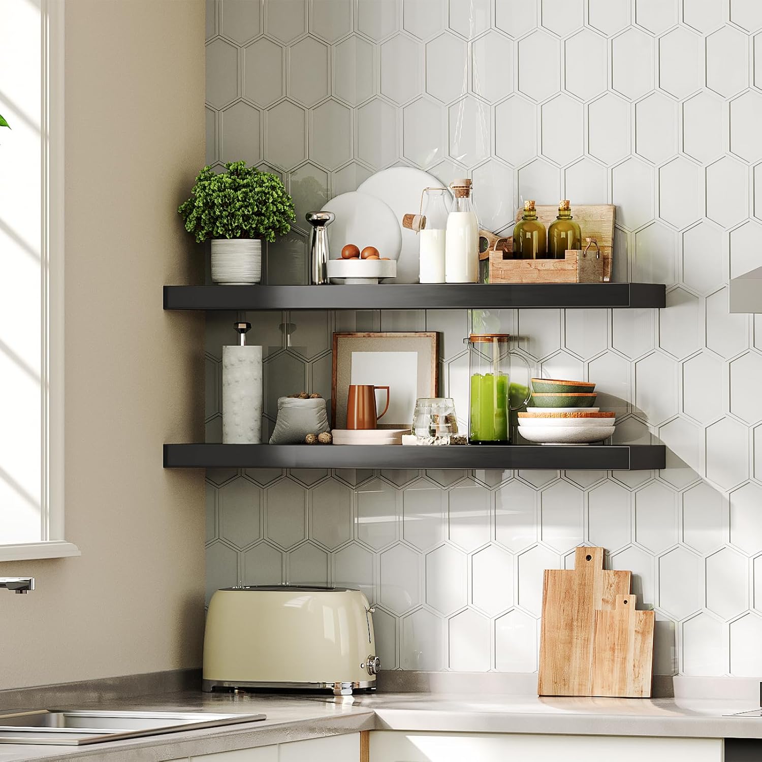 - Exquisite Wall Surface Decoration: Two classic and elegant black wooden shelves can be placed on each wall surface of all household rooms. This floating shelf for room wall is not only for its decoration effect, but also for this wall shelves high practicality. It is an ideal place to display your beloved photos, trophies and other delicate ecorations
