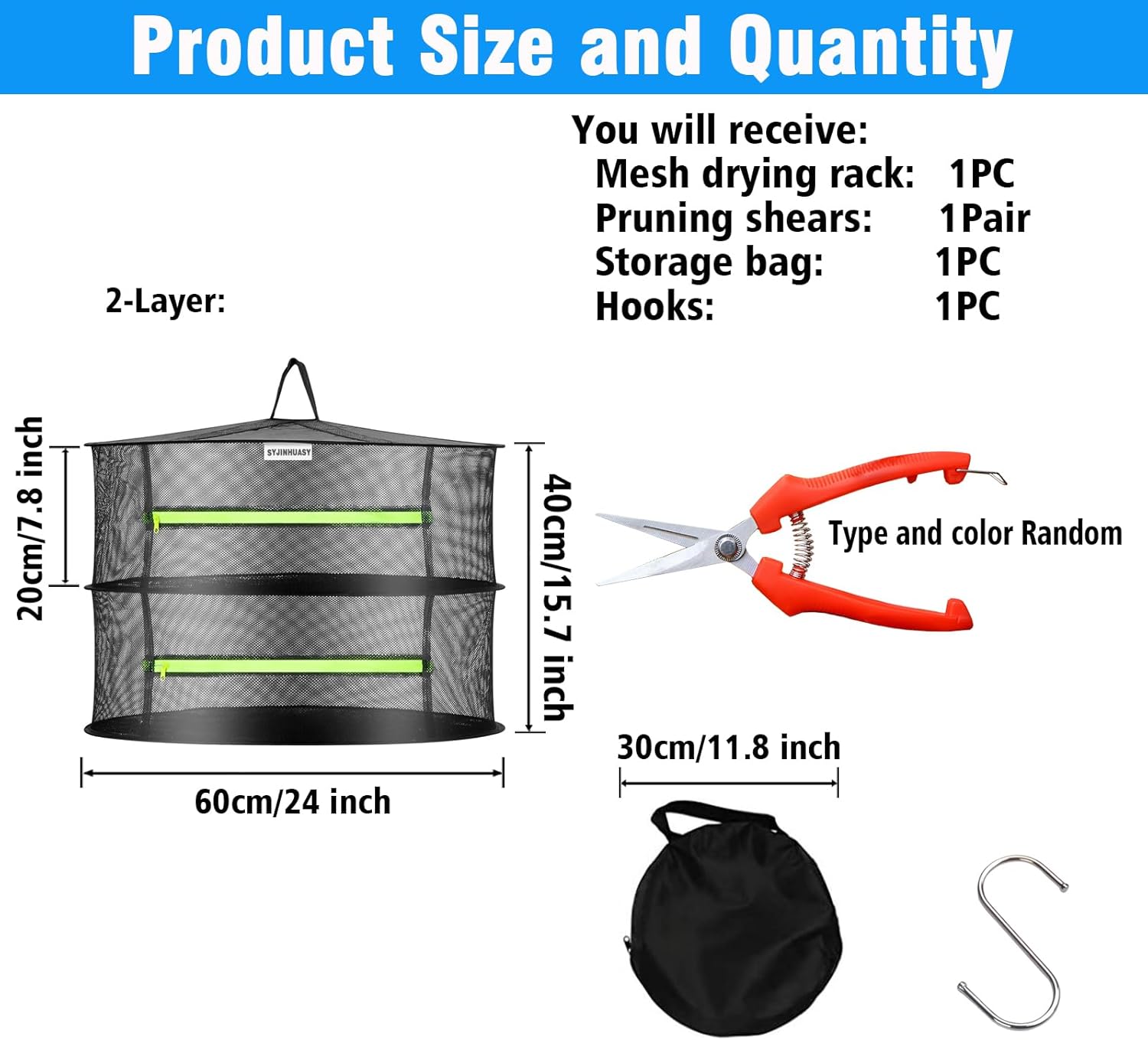 - Great Combination: As if the drying rack itself wasn’t enough, we’re throwing in a pair of ergonomically designed, ultra-sharp pruning shears too,a hooks, and a storage bag.