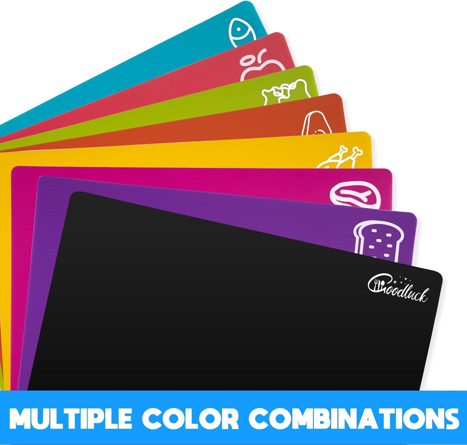 GoodLuck 10 Pieces Flexible Cutting Boards with Hanging Hole, BPA Free Plastic Cutting Boards for Kitchen, Non Slip Cutting Mat for Meat and Vegetables