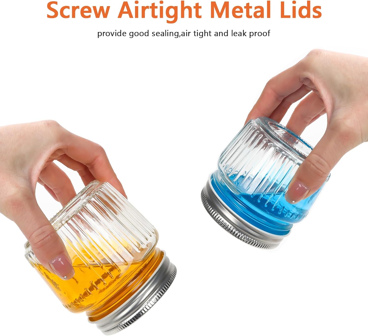 - Package Include: 8 Pack 4 oz/120 ml mason jars with silver screw metal lids. This mason jar have an elegant design and the transparent glass can clearly distinguish what is inside