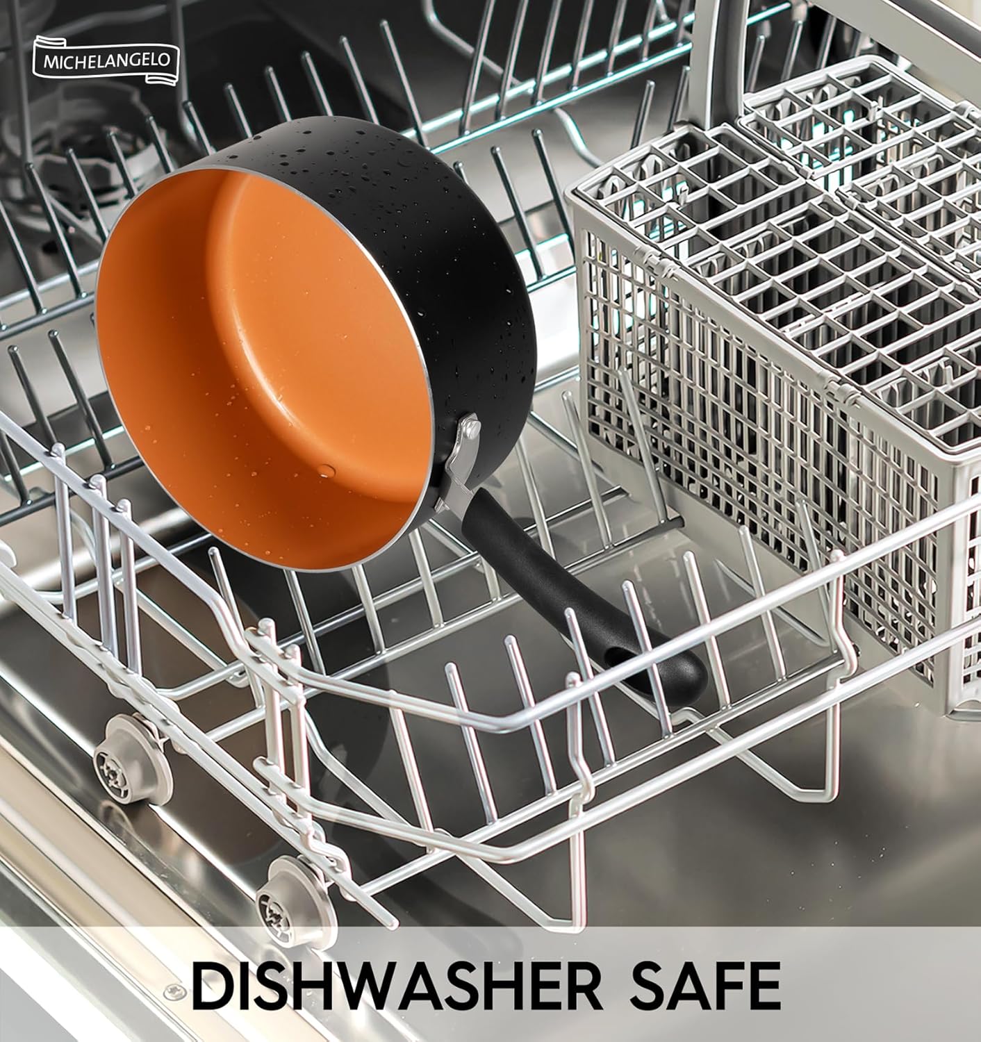 MICHELANGELO Nonstick Sauce Pan With Lid, 3QT Ceramic Saucepan, Copper Saucepans, PFAS-FREE Pot, Small Pots For Cooking, Multipurpose Cooking Pots For Home Kitchen, Dishwasher Safe