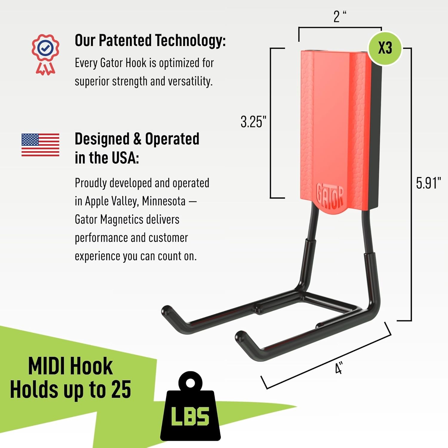 GATOR MAGNETICS MIDI 4 in Open Hooks, 25 lb Heavy Duty Magnetic Hooks for Steel Surfaces, Patented Easy-Release, Non-Slip Grip – Storage & Organization, Garage, Shed, Home, Cleaning Tools - 3 Pack
