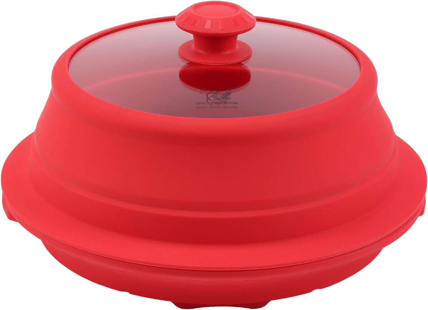 - 【Food Grade Material】: Food safe durable tempered glass and silicon, BPA and chemical free, High-temperature resistant glass, Foldable silicon microwave cover, Includes plate cover and tray to protect your microwave from splashes and spots. The tray has two handles to prevent burns and allow you to quickly remove heated food.