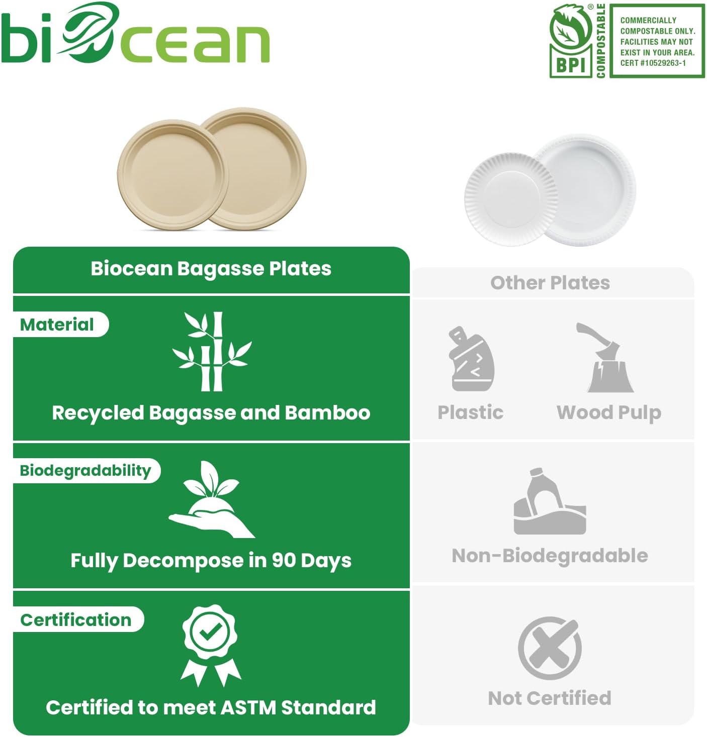 - Chemical-Free Pledge - Our disposable plate take an extra stride for cleanliness, free of PFAS and devoid of plastic or wax coatings. Beyond the green choice, they prioritize your family's health, aligning your values with a sustainable, chemical-free dining experience. Make a choice that resonates with a greener future by choosing Biocean compostable plates