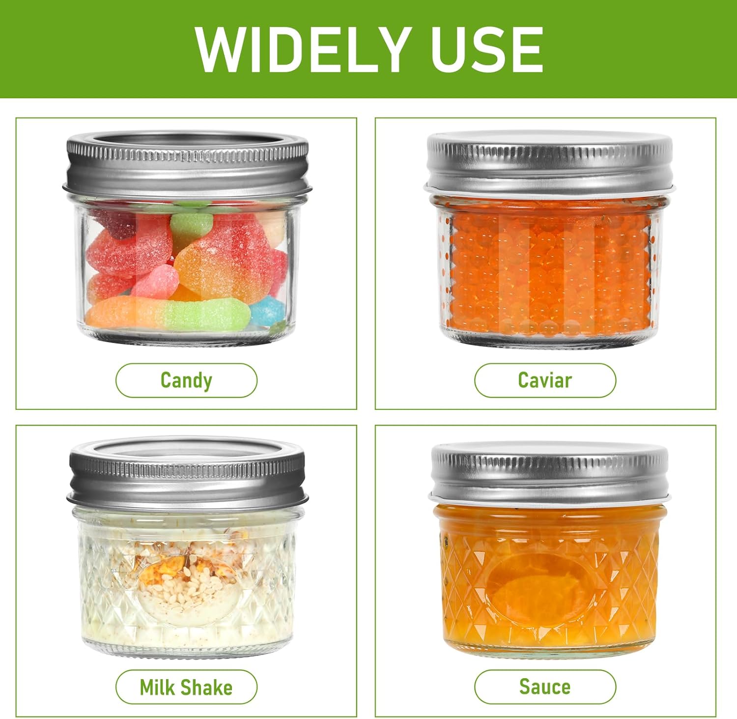 - PORTABLE MINI CANNING JARS: The mini canning jars are convenient to carry. You can pack jam and juice into 4oz small mason jar for easy portability. Perfect to put in a bento box, backpack and to take to a picnic or going out.