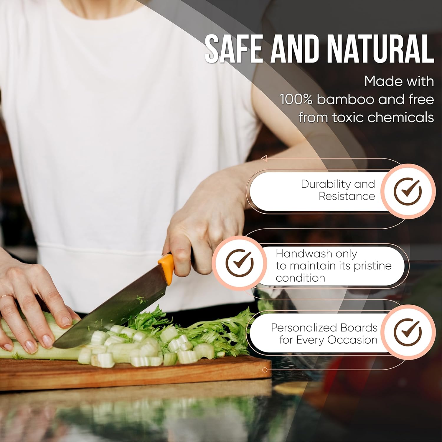- ULTIMATE KITCHEN SAFETY: Made from 100% natural bamboo, free of harmful chemicals. Ensures a safe surface for festive meals. Handwashing recommended to maintain beauty for holiday seasons.