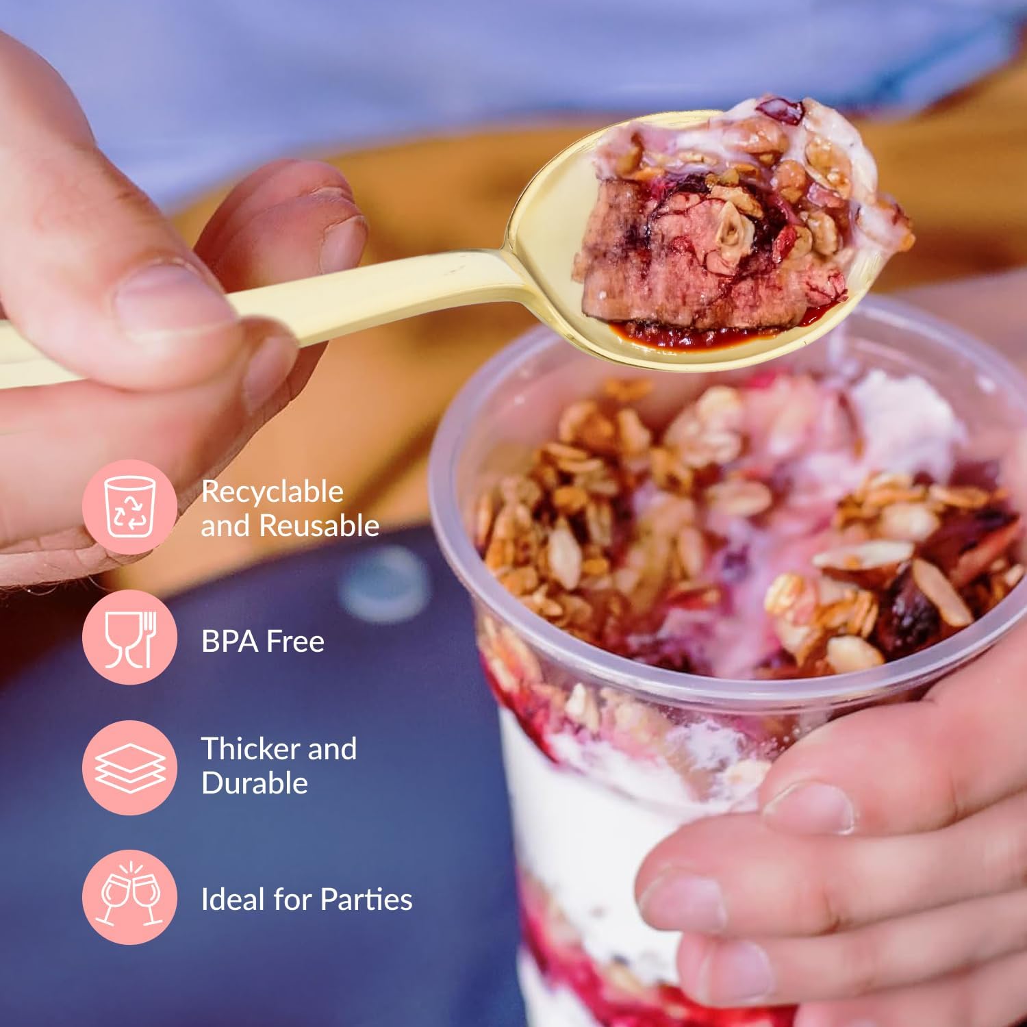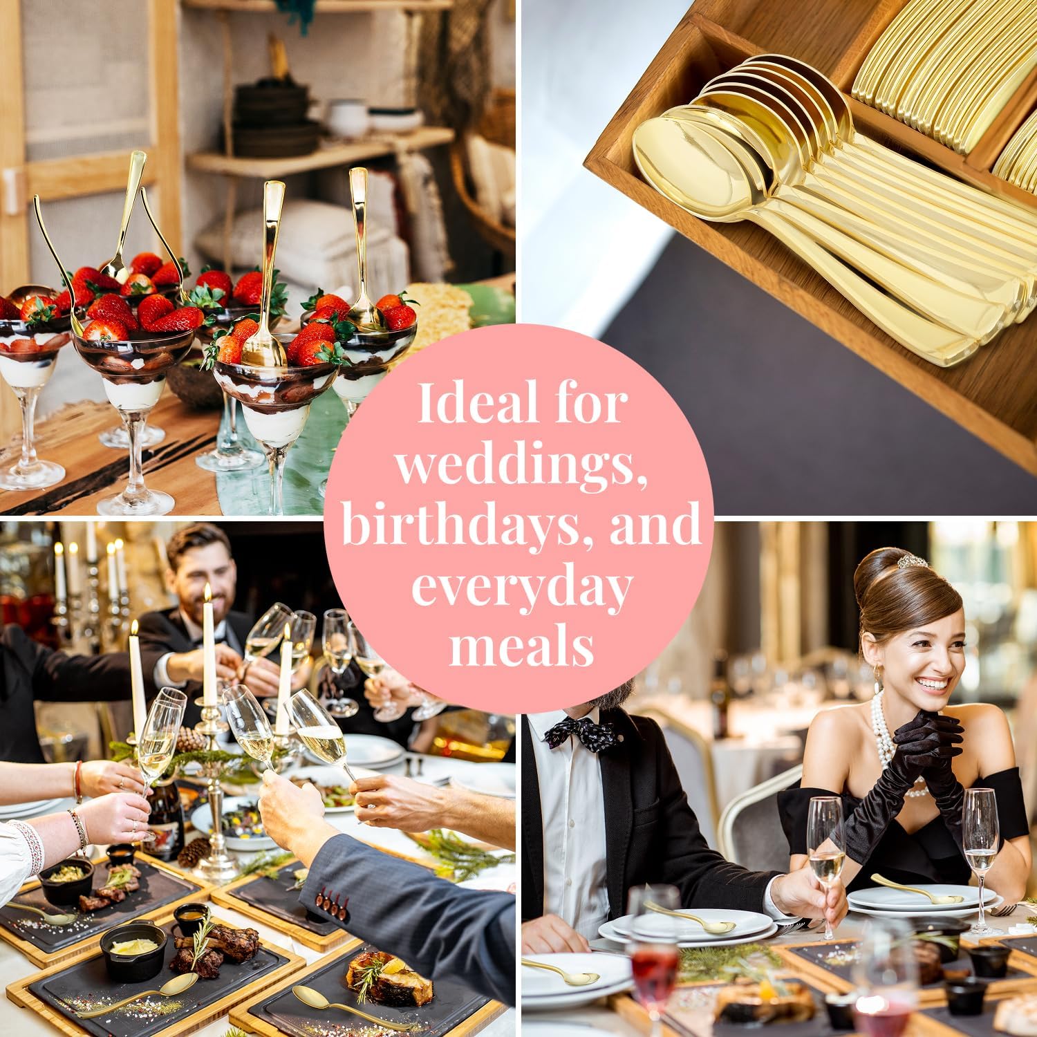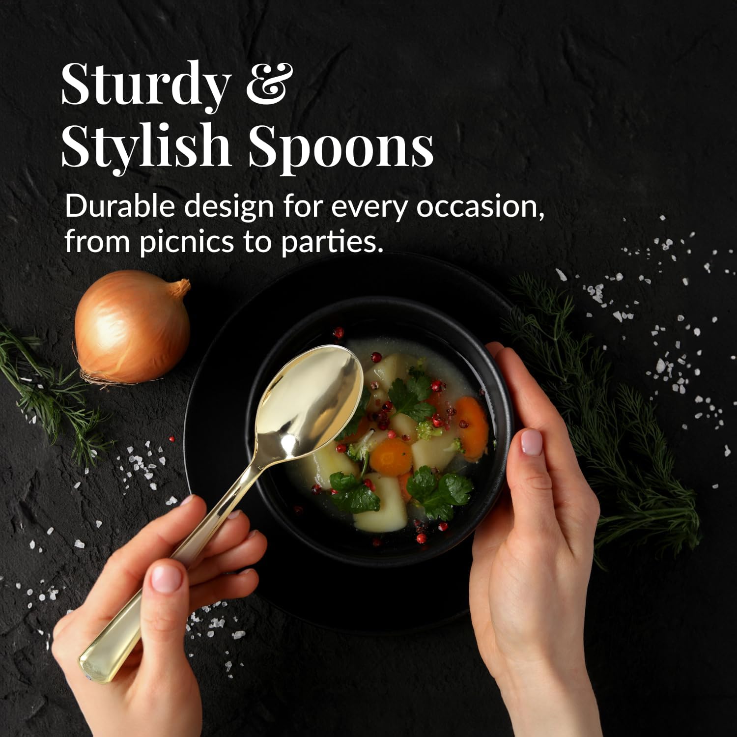 Prestee Gold Plastic Spoons, 300 Pc, Disposable Spoon Cutlery Flatware Pack for Party, Wedding Events, Sparkle & Glamour - Plastic Utensil Set for Parties, Events and Everyday Use