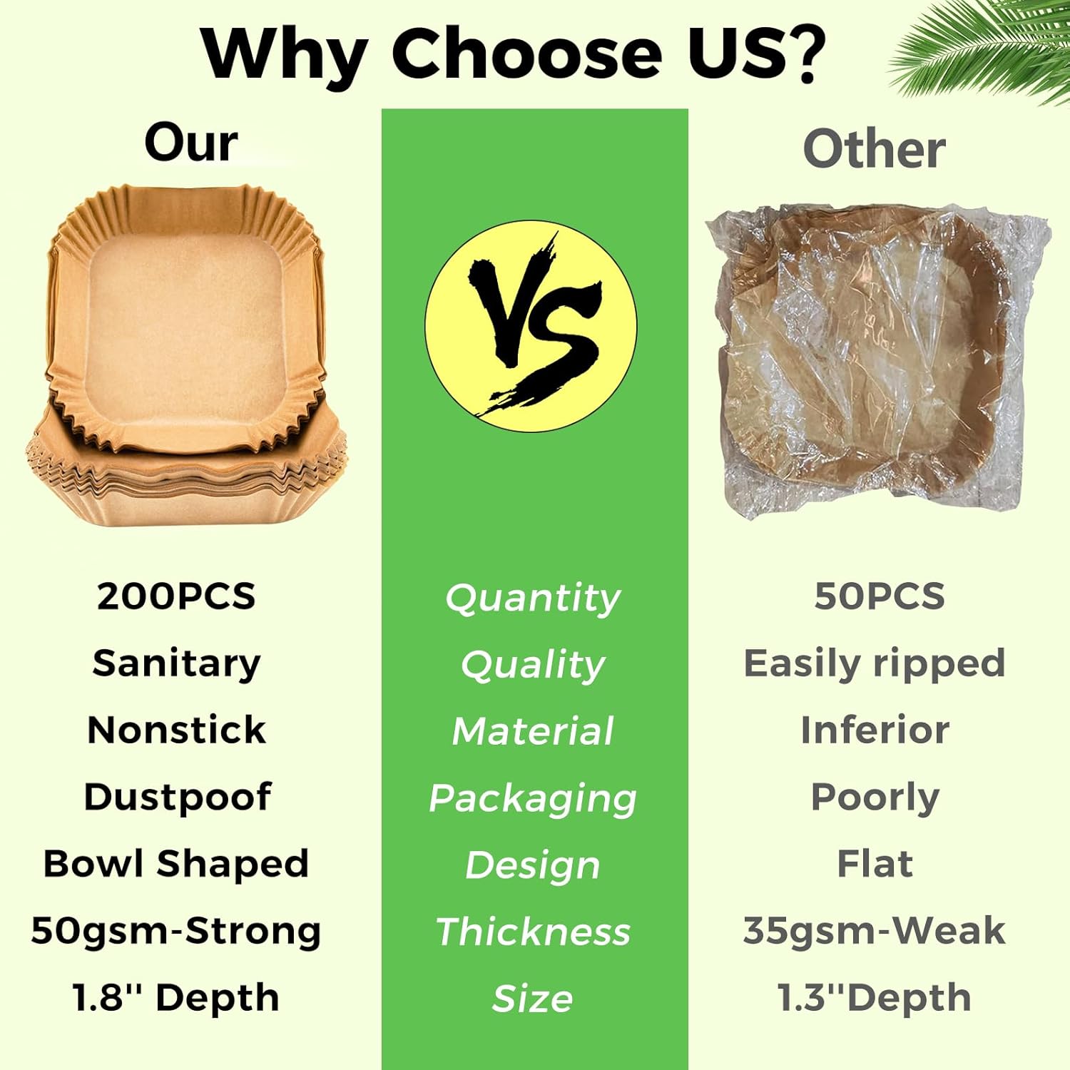 Ctizne Air Fryer Liners Disposable, 200PCS 6.5 Inch Square Parchment Paper Liner for Air Fryer, Grease and Waterproof Baking Liner for 3-5 QT Airfryer Basket