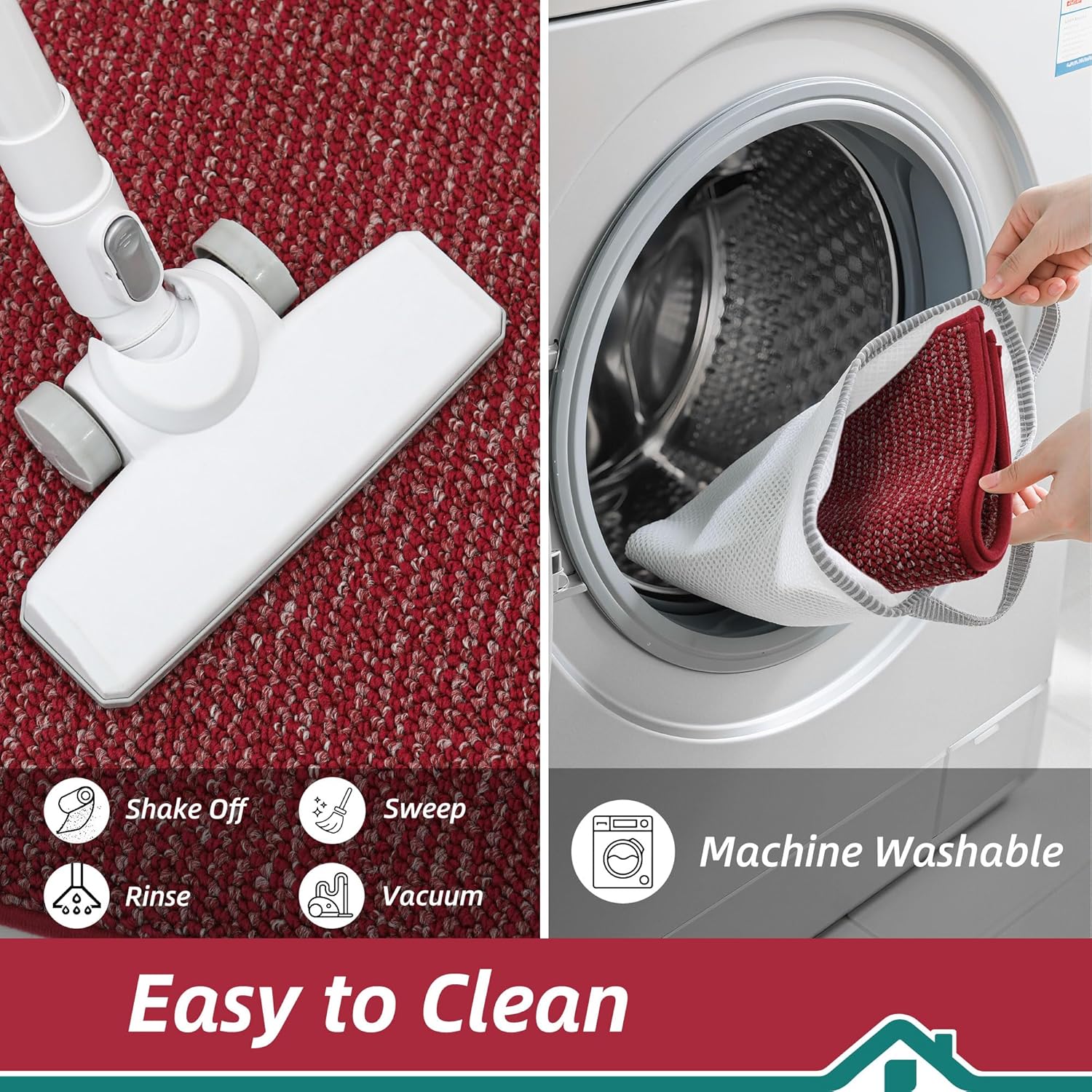 - Easy to Clean: The stain and fade resistant kitchen runner rug can be easily cleaned by a broom or vacuum cleaner. For a deeper clean, machine wash separately in cold water, using mild detergent. Tumble dry, low heat. Do not use bleach or fabric softener