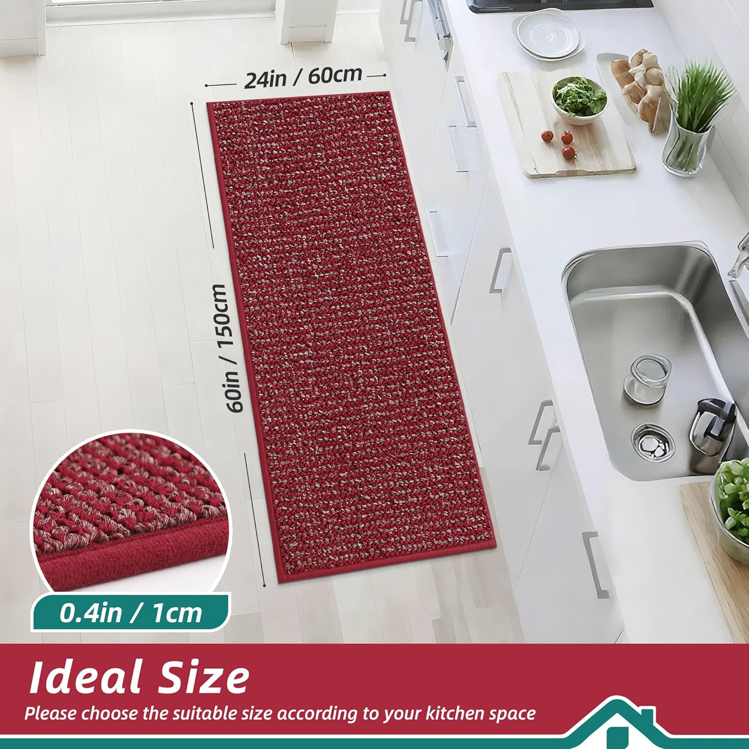 BEQHAUSE Kitchen Runner Rugs 24"x60", Non-Slip Kitchen Mats for Floor, Super Absorbent and Stain Resistant Kitchen Rug, Machine Washable Rugs for Kitchen, Hallway, Laundry & Sink, Red