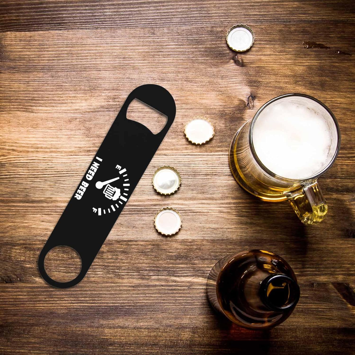 I Need Beer Stainless Steel Bottle Opener Beer Fuel Design Lnspirational Black Flat Beer Bottle Opener Keychain for Home Kitchen Bar Restaurant Party Birthday Gift