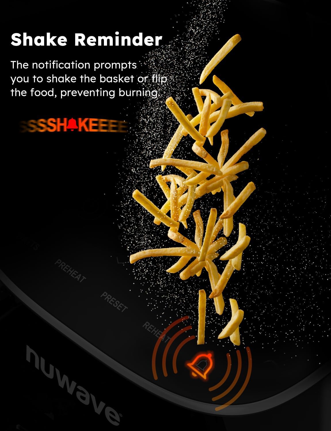 Nuwave Brio Plus 8 Qt Air Fryer, PFAS Free, New & Improved, Digital Touch Screen, Cool White Display, 50°F~400°F in Precise 5°, 5 Cook Functions, 100 Presets & 50 Memory, 3 Wattages 700, 1500, 1800