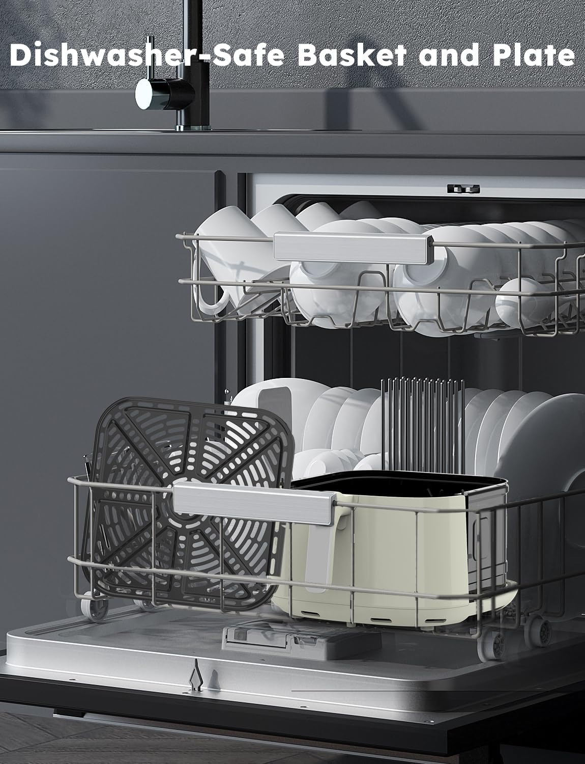 - SAFETY BUILT-IN – When the air fry basket is pulled out (opened), cooking is paused for safety. Once the basket is pushed back in (closed), the cooking resumes automatically. The air circulation riser is also redesigned to fit very securely eliminating the chance of mishaps.
