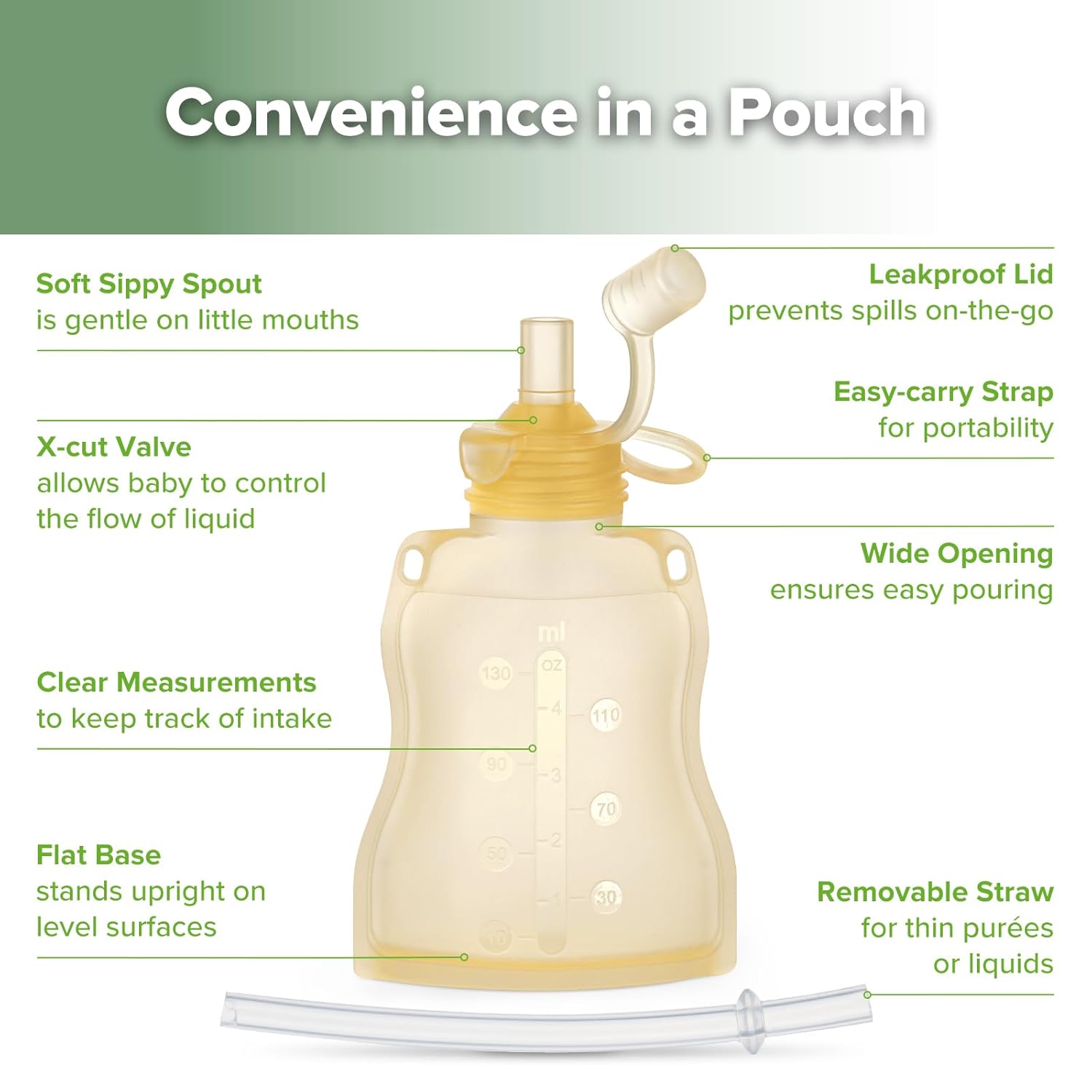 - ππππππππππ ππππ -π ππππππ:Each of these reusable pouches for toddlers and babies includes a variable flow opening for safe, self-paced feeding. Soft silicone spout is gentle on mouths, easing the transition to solids.