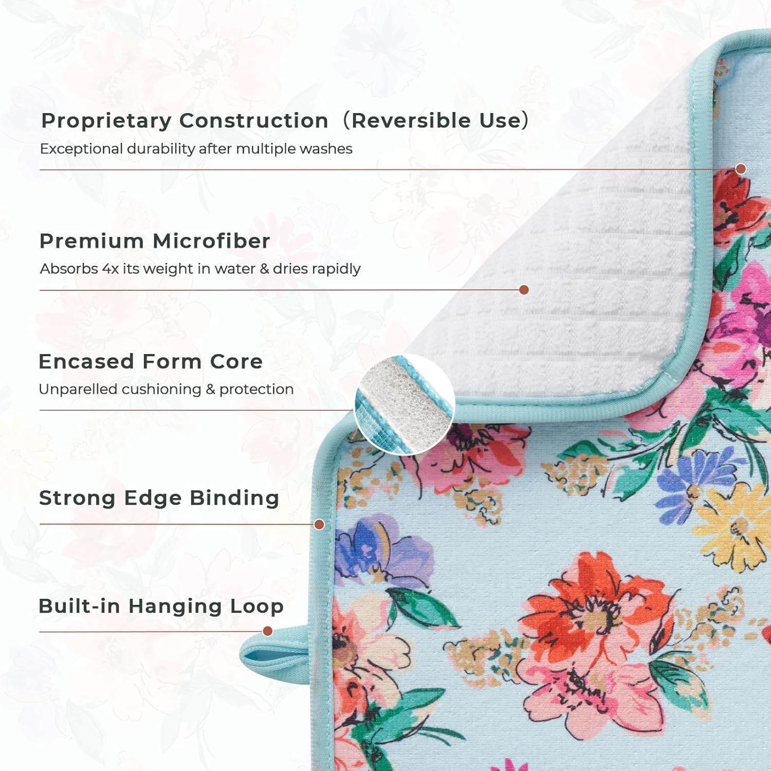 FRESHMINT Printed Dish Drying Mats for Kitchen Counter 2 Pack Absorbent Reversible Drying Mats Microfiber Kitchen Countertop Protector Dishes Drying Pad Extra Large 18"x16" Dish Mat