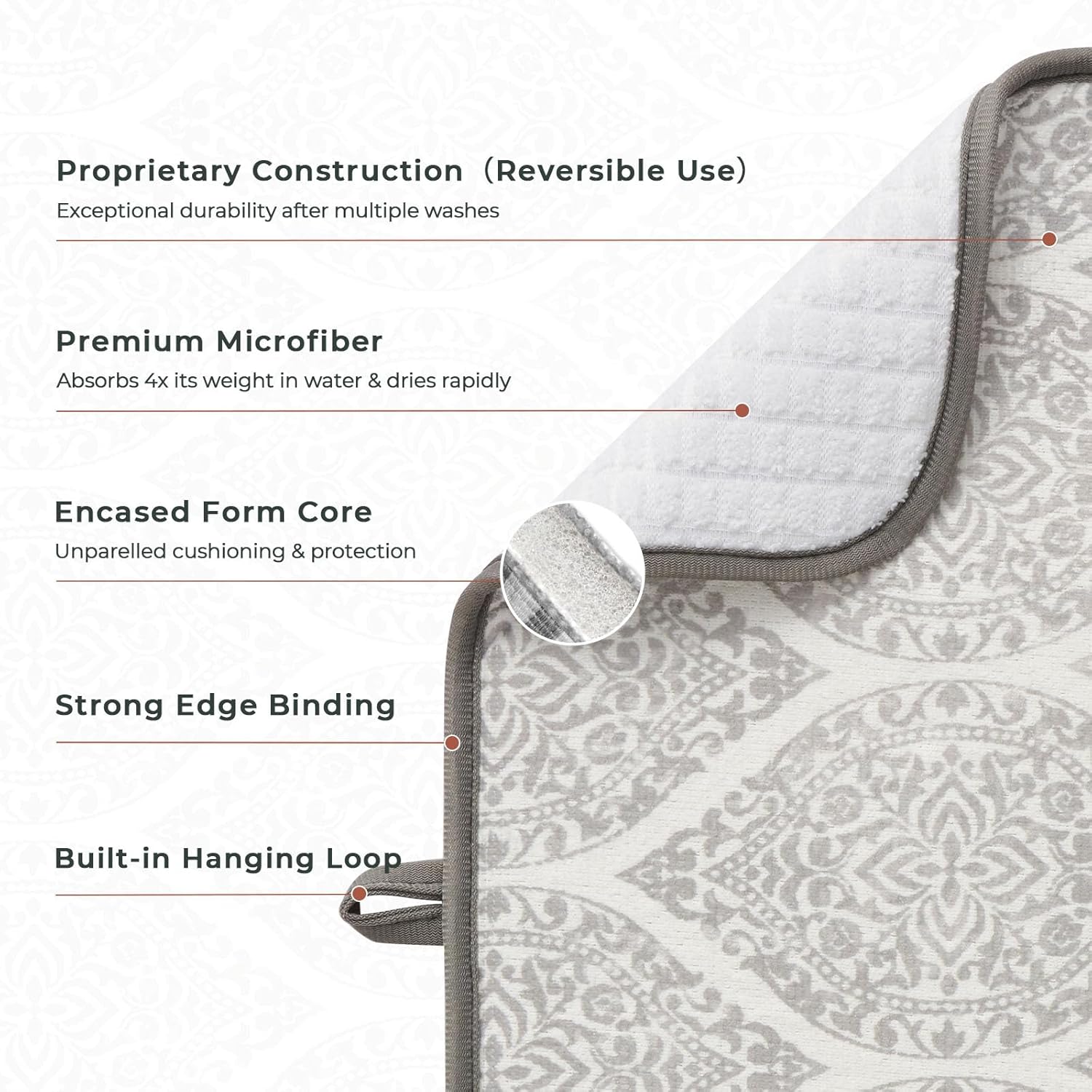 FRESHMINT Printed Dish Drying Mats for Kitchen Counter 2 Pack Absorbent Reversible Drying Mats Microfiber Kitchen Countertop Protector Dishes Drying Pad Extra Large 18"x16" Dish Mat