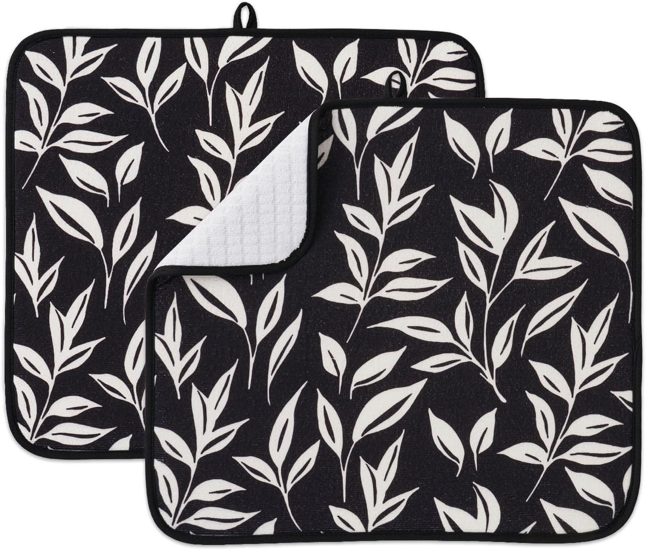 FRESHMINT Printed Dish Drying Mats for Kitchen Counter 2 Pack Absorbent Reversible Drying Mats Microfiber Kitchen Countertop Protector Dishes Drying Pad Extra Large 18"x16" Dish Mat