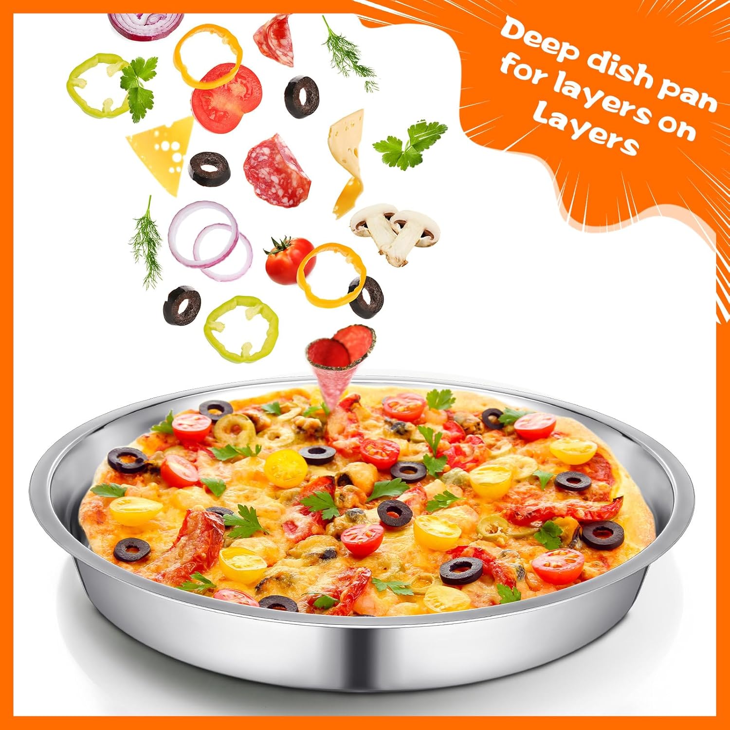 - Thoughtful Design: these pizza pans have smooth edges for a comfortable grip; More than that, their angled edges prevent your pizza from sliding off the 16 inch pizza pan and avoid the food juices from splattering around, keeping your kitchen clean and tidy