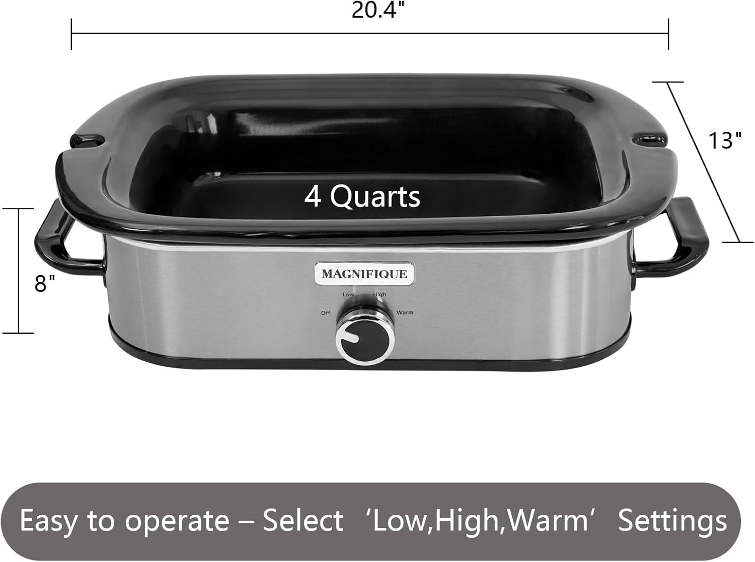 - MULTIPLE HEAT SETTINGS – Select between “Low” or “High” cooking temperatures. Depends on what you are cooking and how long you want to slow cook for. Also, use the “Keep Warm” setting to keep your food warm for hours after you are finished cooking.