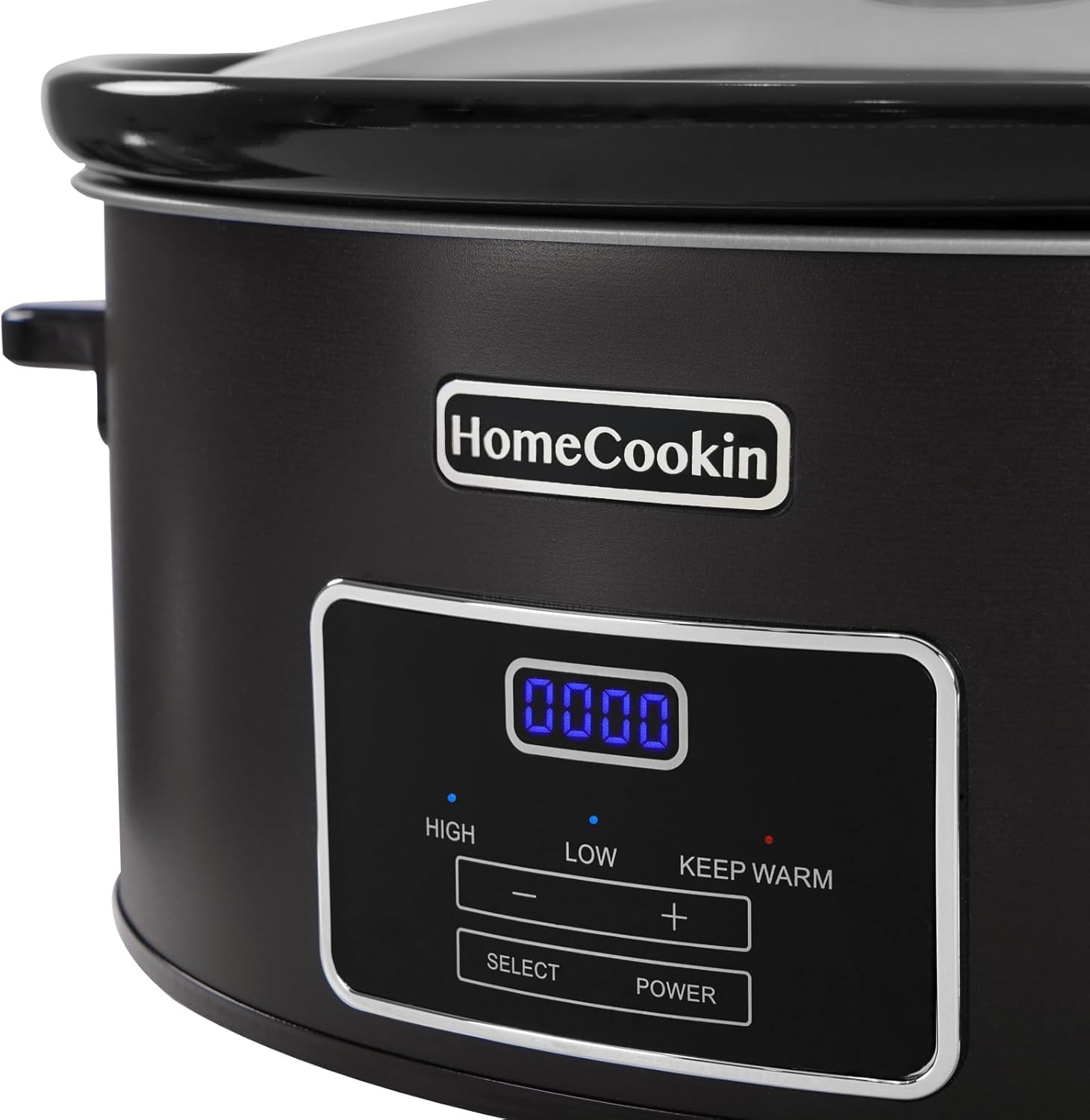 HOMECOOKIN 8 Quart Programmable Slow Cooker, Kitchen Appliances, Perfect Kitchen Small Appliance for Family Dinners, Black Stainless Steel