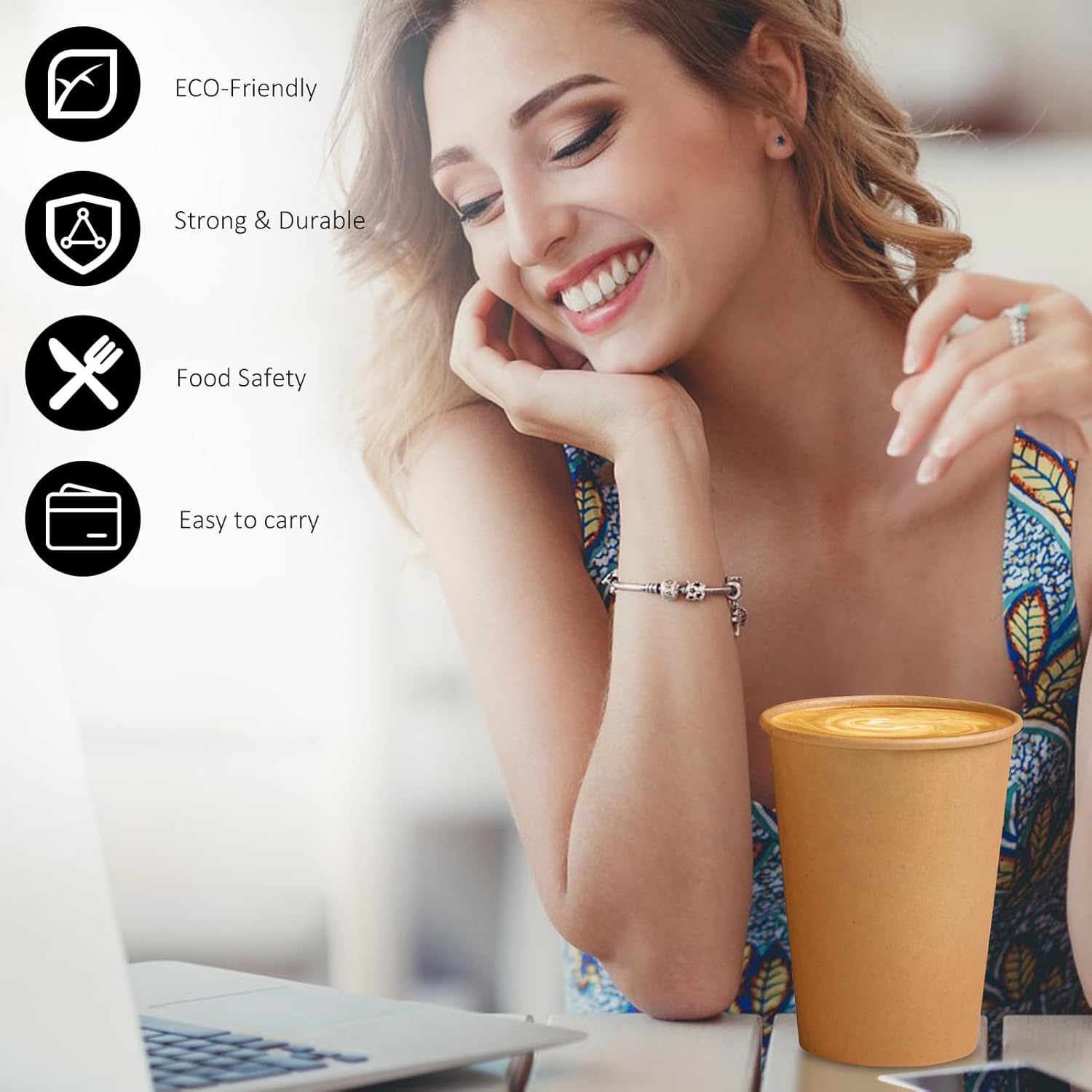 180 Pack 12 OZ Paper Cups, Brown Kraft Disposable Paper Coffee Cups 12 oz, Unbleached Paper Cups for Hot/Cold Beverage Party, Picnic, Travel, and Events.