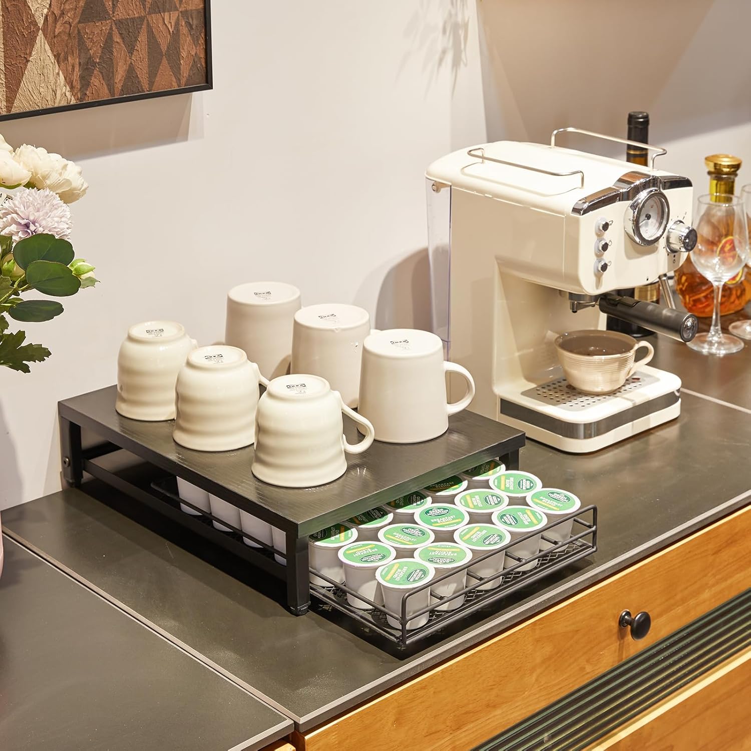 - 【STURDY AND SIMPLE DESIGN】: The capsule pods storage organizer gives your quiality coffee a quiality storage. This coffee pod holder is firm and space saving. You can also put your coffee brewer or coffee maker on its large top suiface.