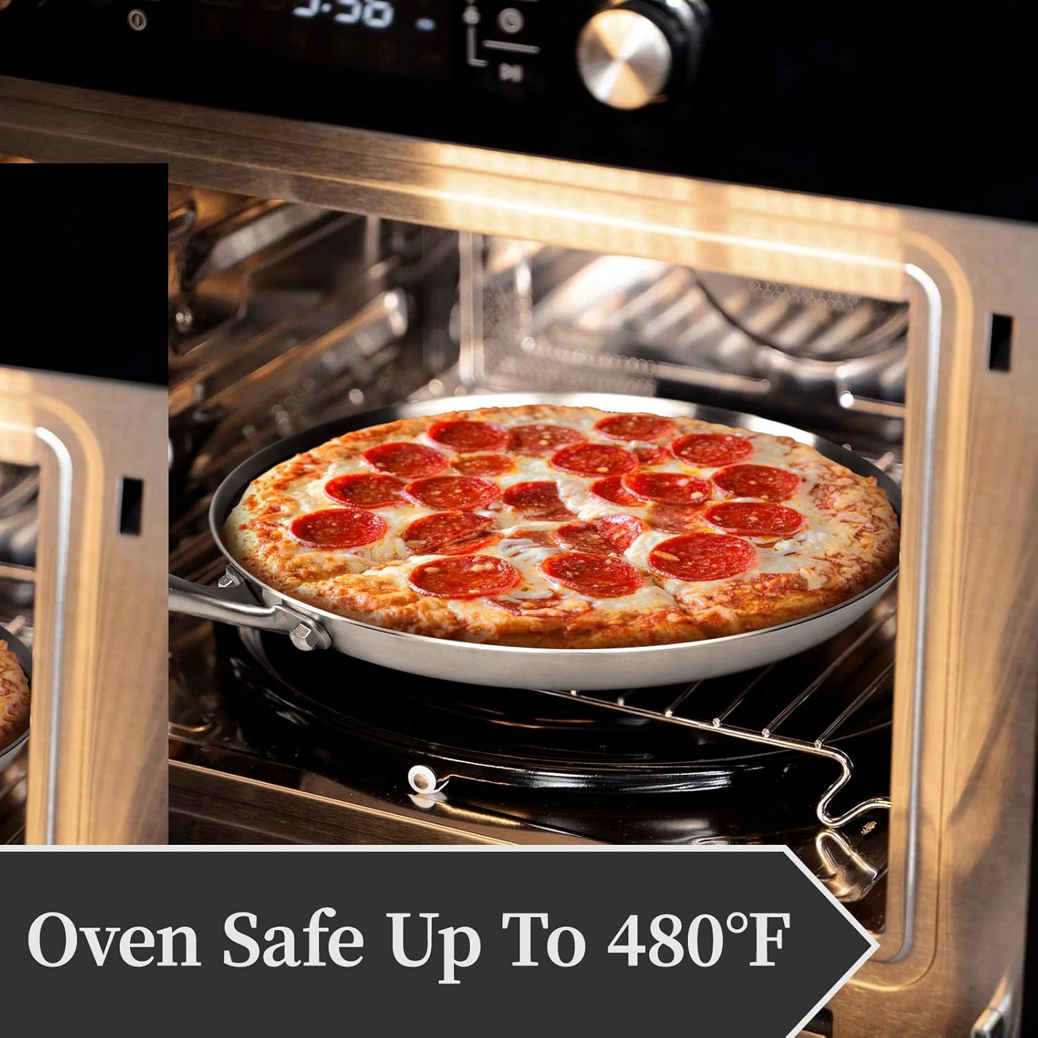 - 【Give You A Healthy and Safe Diet Life】The Large 12 inch stainless steel crepe pan is made of high quality food grade stainless steel, which is acid resistant and corrosion-resistant, and does not react with food, brings you a healthy cooking and diet environment. Innerwell stainless steel pancake pan with honeycomb texture has the feature of scratch resistance and wear resistance, no longer need to worry about food contamination due to aluminum metal release. The crepe pan nonstick gets SGS approved, BPA free, PFOA free, lead and cadmium free