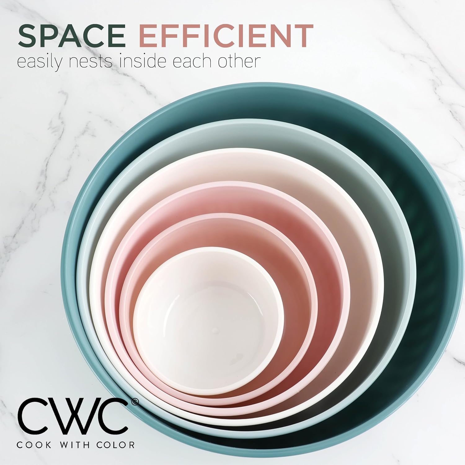 - Cook with Color 12 piece plastic mixing bowl set - non slip bowls with lids; easy to clean, sturdy mixing bowls.