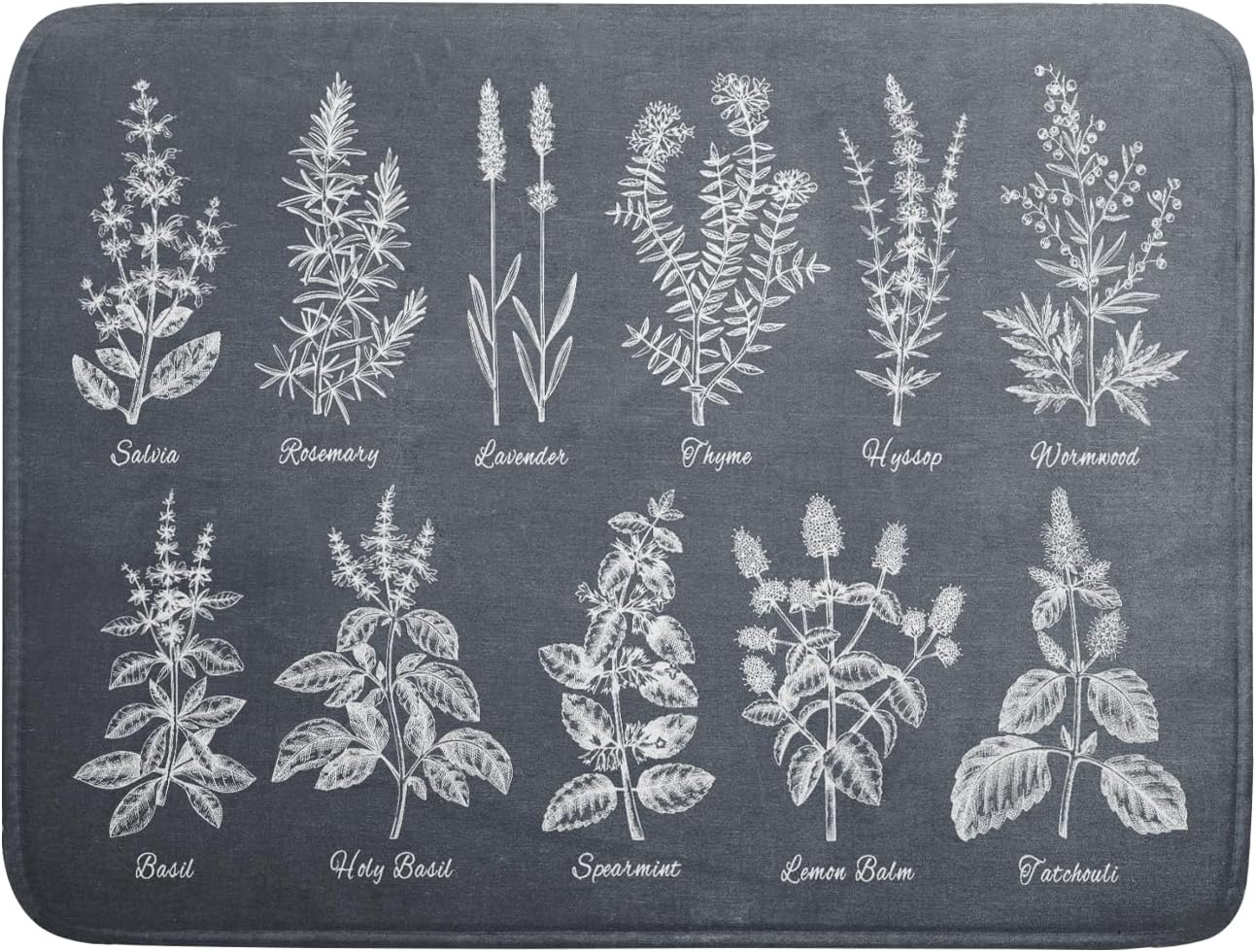 Flower Herbs Dish Drying Mat Wild Plant Dish Rack Mat with Hanging Loop Fast Dry Dish Drainer Pad for Kitchen Counter Sink 18x24 Inch