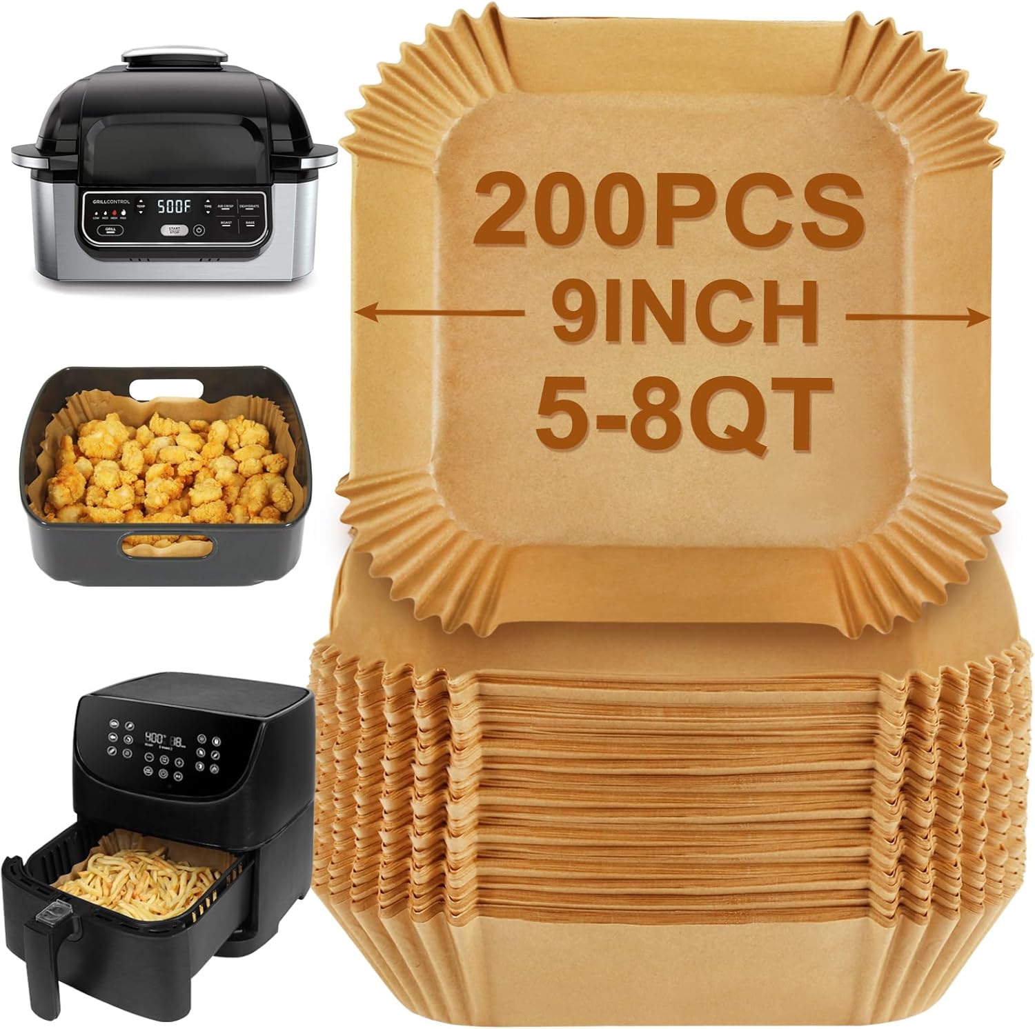 BYKITCHEN Air Fryer Sheet Liners for Ninja AG301 Grill, Cosori, Gourmia Airfryer, Set of 200, 9 Inch Air Fryer Parchment Paper Filters for 5 to 8 Qt Basket, Ninja Foodi Grill Accessories