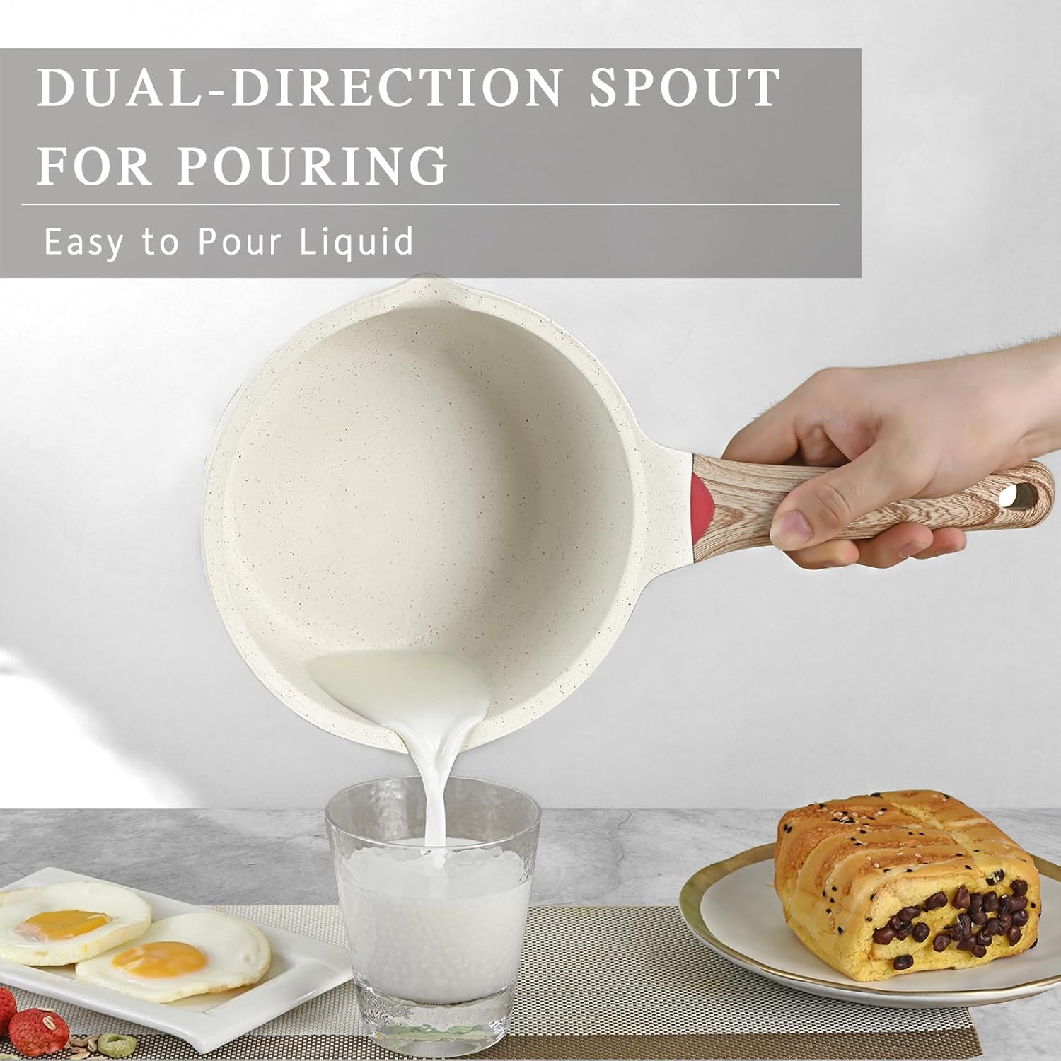 - 【3QT Non-Stick Milk Pot】Features PFOA/PFOS-free granite coating designed to require less oil with reduced smoke production. Includes lid and easy-release coating, suitable for heating milk, making porridge or preparing sauces.