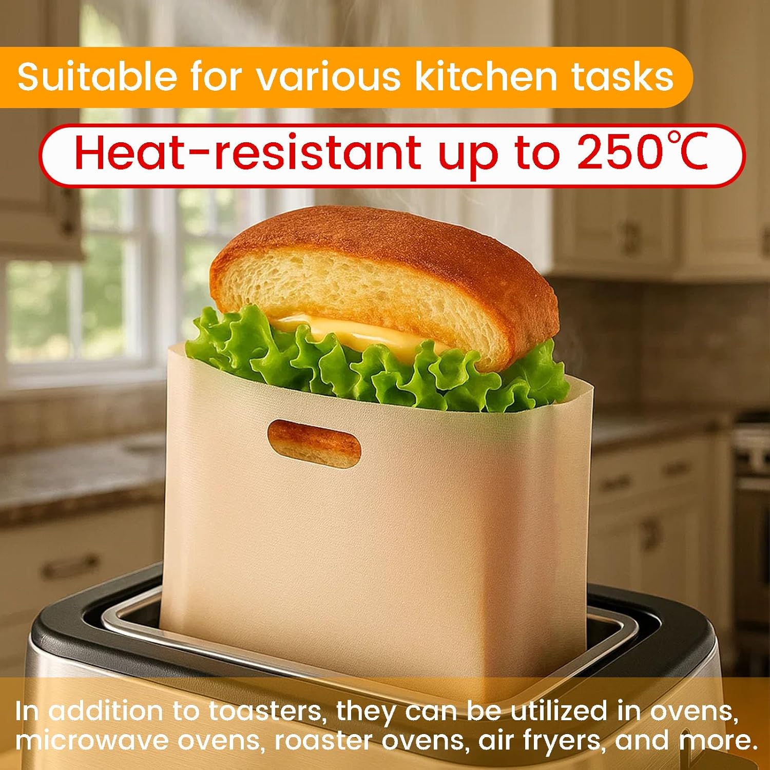 - Versatile Applications - These toaster bags are heat-resistant up to 250℃, making them suitable for various kitchen tasks. In addition to toasters, they can be utilized in ovens, microwave ovens, roaster ovens, air fryers, and more.