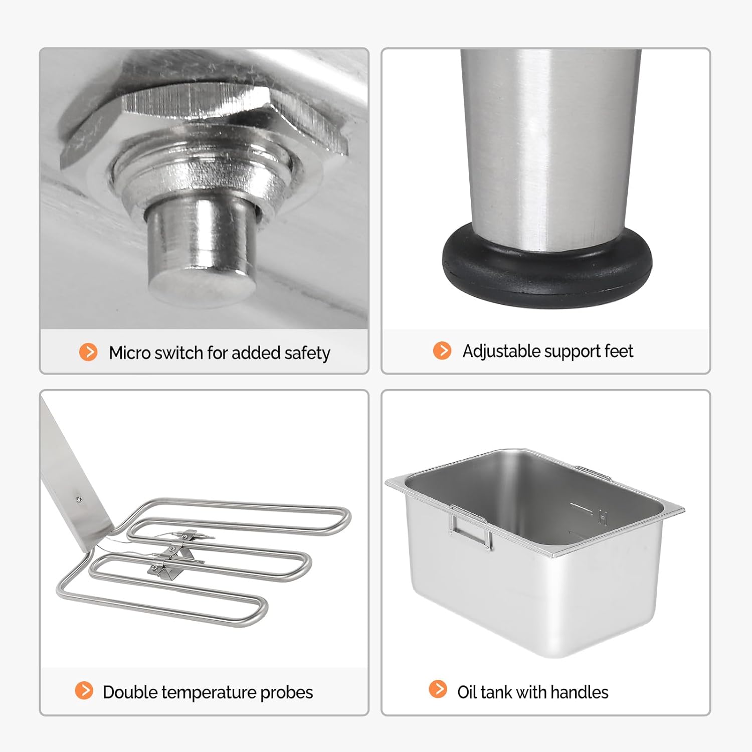 - 【Timer and Temp Control】One temperature knob and a 60-minute timer controls a tank, you can choose the right temperature based on what you'd like to fry. Besides, the oil deep fryer is designed with U-shaped 304 stainless steel heating tubes for evenly heat distribution. Temperature Range: 50℃ - 200℃ (122℉ - 392℉). NOTE: The deep fryer Needs AT LEAST 16A OUTLET To Support It