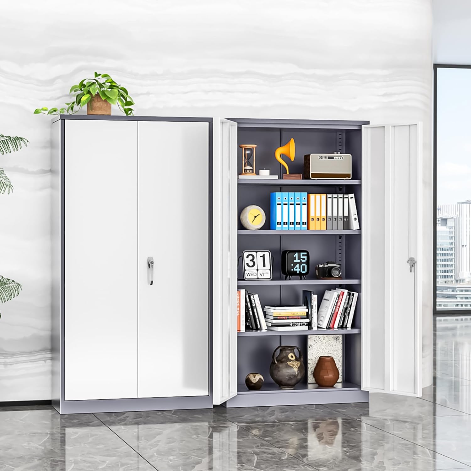 - 【High Security】: Tall steel storage cabinet with 2 door and 4 adjustable shelves to accommodate items of all sizes.The locking file cabinet with 2 Locking keys and 3-pointed locking system can highly secure your belongings.Whether you want to store office files, garage tools, or other large and heavy items, it's no problem.