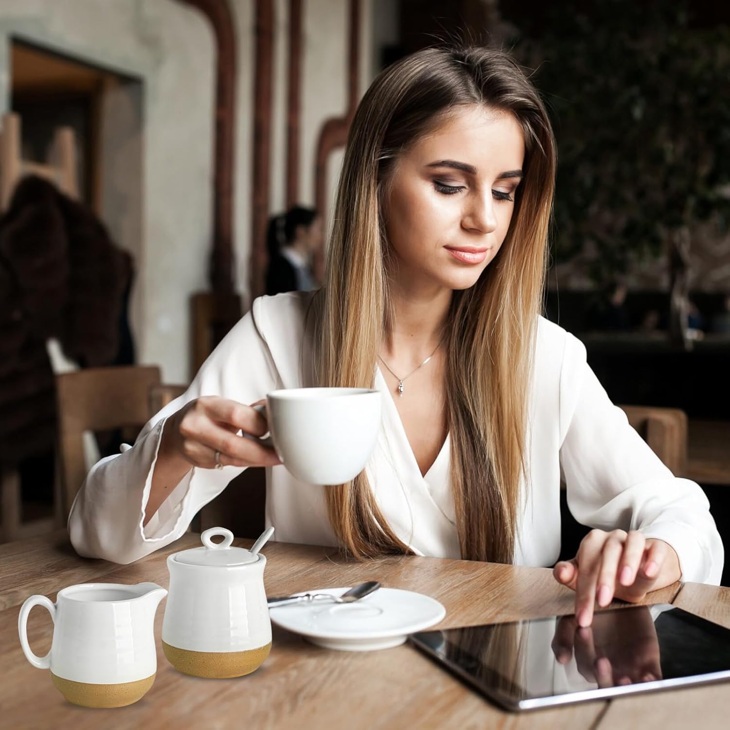 - Complete Coffee Service Set: Enhance your coffee moments with this comprehensive set, including a cream pitcher, sugar bowl, lid, and spoon; ideal for home coffee bars or serving guests