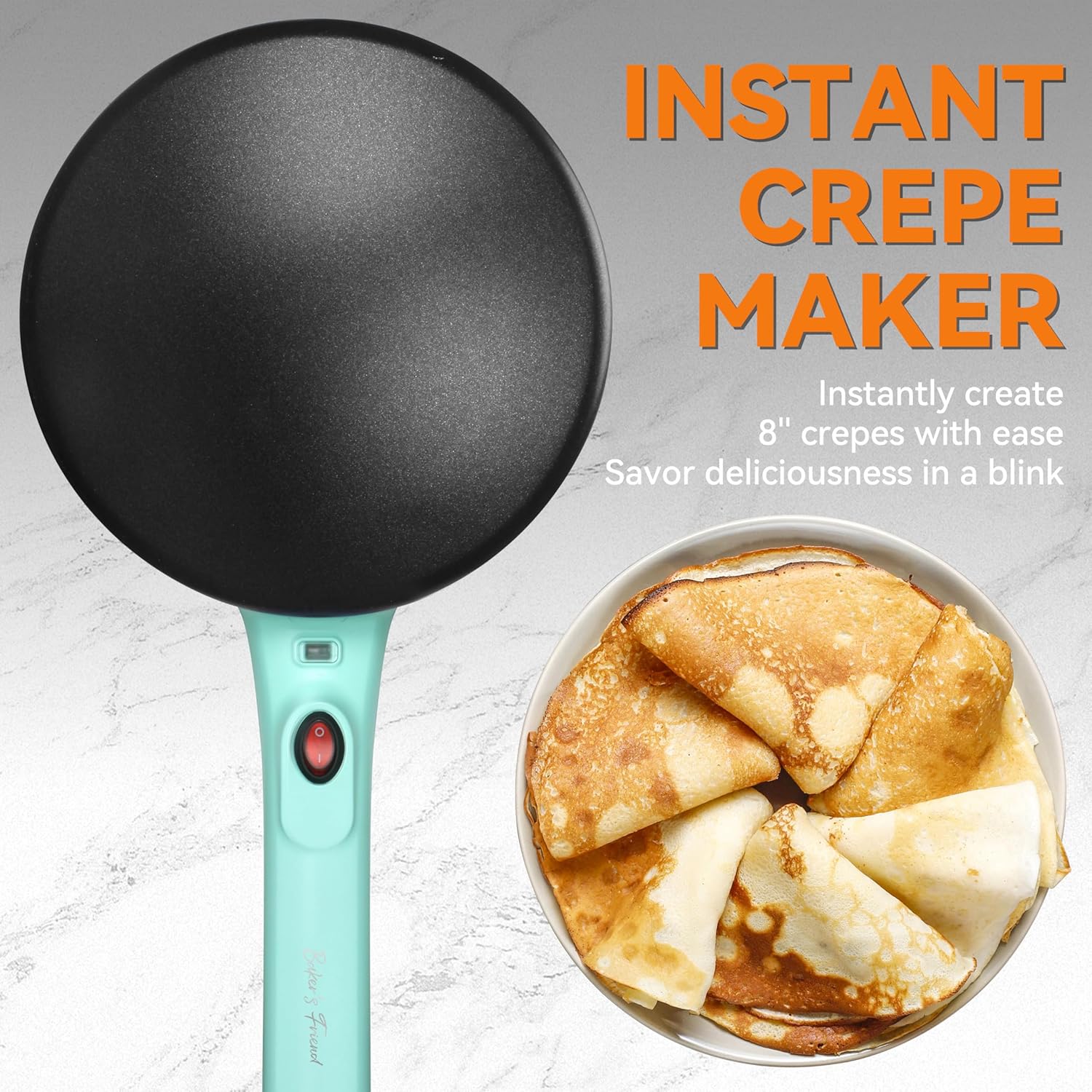 Baker's Friend Instant Crepe Maker with Handle, Electric Crepe Maker Machine, Crepera Electrica, 8 Inch Non-stick Cooking Surface, Aqua