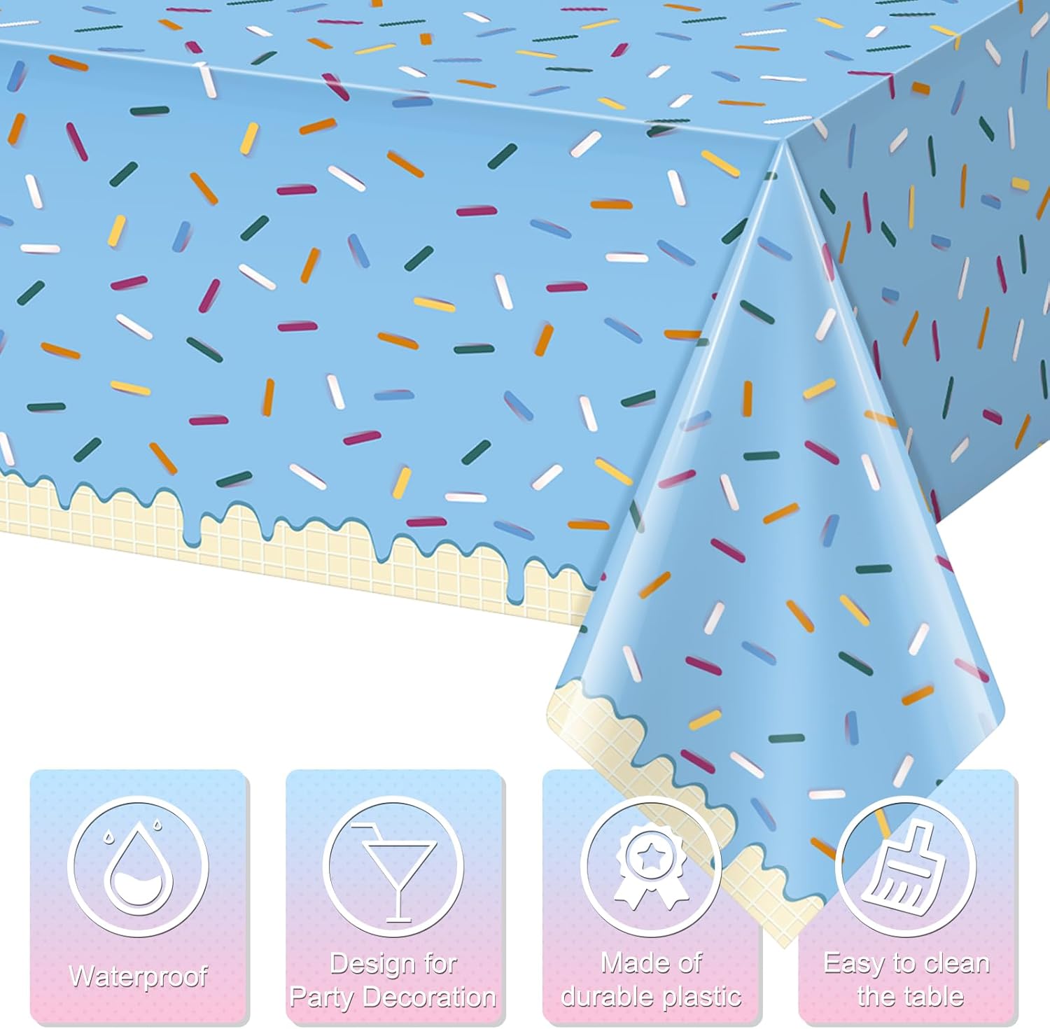 - package includes: you will receive 6 pieces ice cream party tablecloth with light pink,purple,blue 3 color, which are enough quantity to use and replace; printed with delicate sprinkle ,is a good ideal decoration for girl birthday donut themed party.