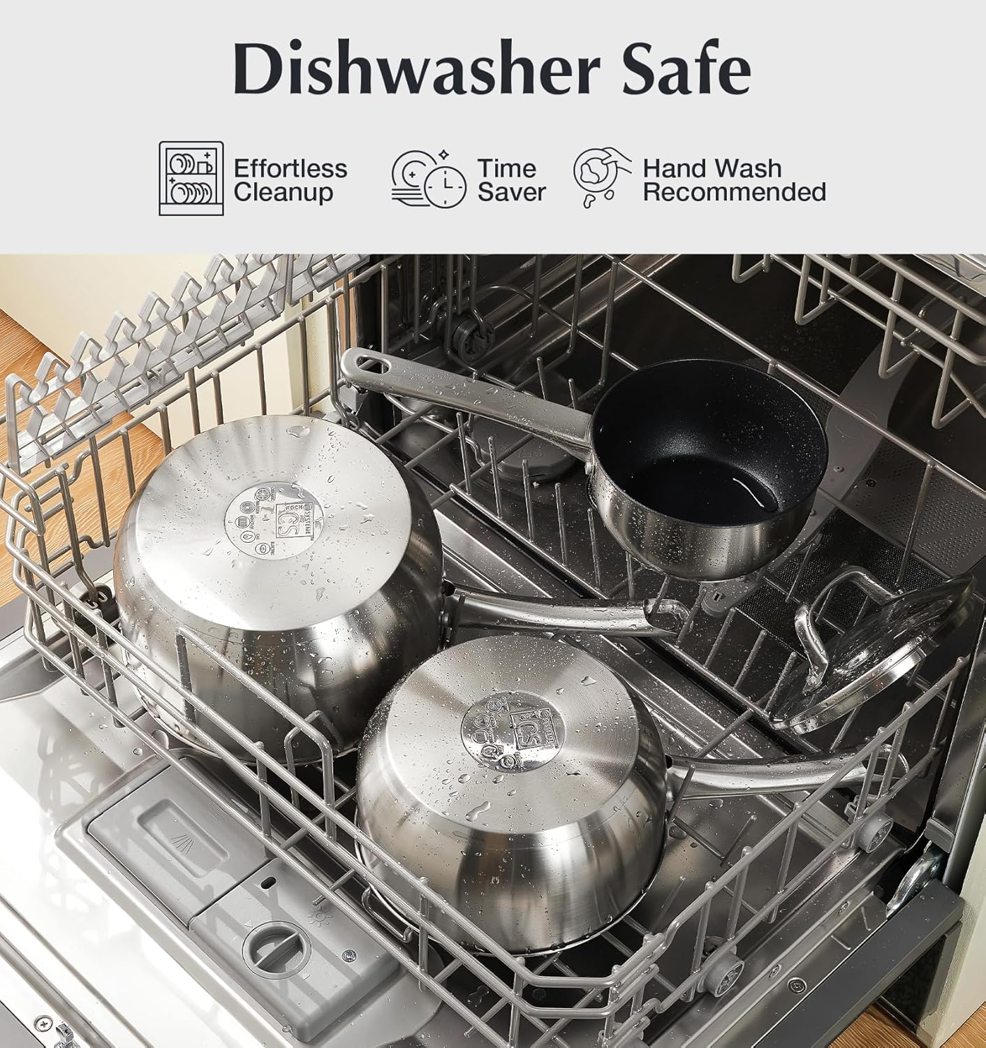 - Induction Compatible: This stainless steel saucepan is versatile for induction, gas, and electric stovetops, oven-safe for cooking and finishing, and dishwasher-safe for easy cleanup after use.