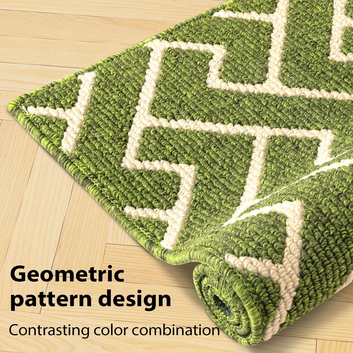 hicorfe Kitchen Rugs and Mats Sets,Non-Slip Absorbent 100% Polypropylene Kitchen Mats for Floor,Comfort Kitchen Runner Mat,Washable for Kitchen,Sink,Laundry(20" x 31.5" Plus 20" x 48",Sage Green)
