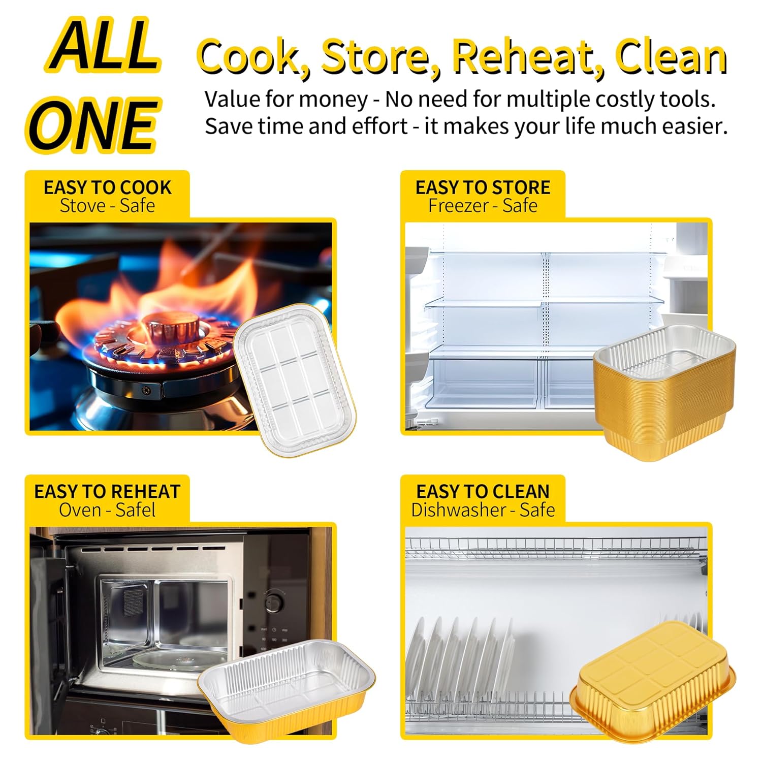 - 【Heavy Duty Aluminum Pans with Lids】Our 2.25 lb Aluminum Foil pans with lids are sturdy enough to hold your heaviest meals! Not all foil pans are created equal, ours are extra thick and 2 times thicker than regular silver foil pans, so they won't tip over and lose their shape! These small aluminum pans come with leak-proof PP lids, perfect for baking, cooking, roasting, freezer storage, and takeout containers.
