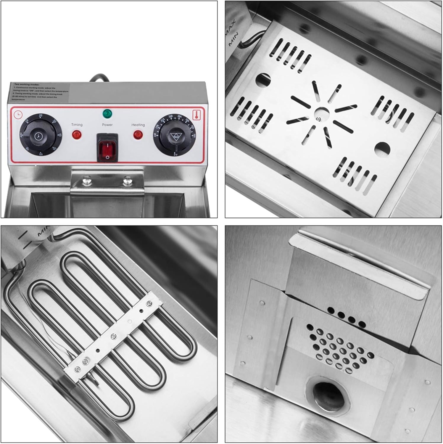 - ๐ ๐๐ฎ๐ข๐๐ค ๐๐จ๐จ๐ค๐ข๐ง๐ & ๐๐ฏ๐๐ง ๐๐๐๐ญ๐ข๐ง๐ : This commercial deep fryer boasts a powerful 3400W U-shaped stainless steel heating tube, ensuring even heating for dishes like French fries, onion rings, egg rolls, and fried chicken. Perfect for tasty snacks! The temperature control knob maintains a range of 140-392โ (60โ-200โ) for perfect cooking. Plus, with a 60-minute timer, you have precise control over the cooking time, making your cooking experience even more effortless.