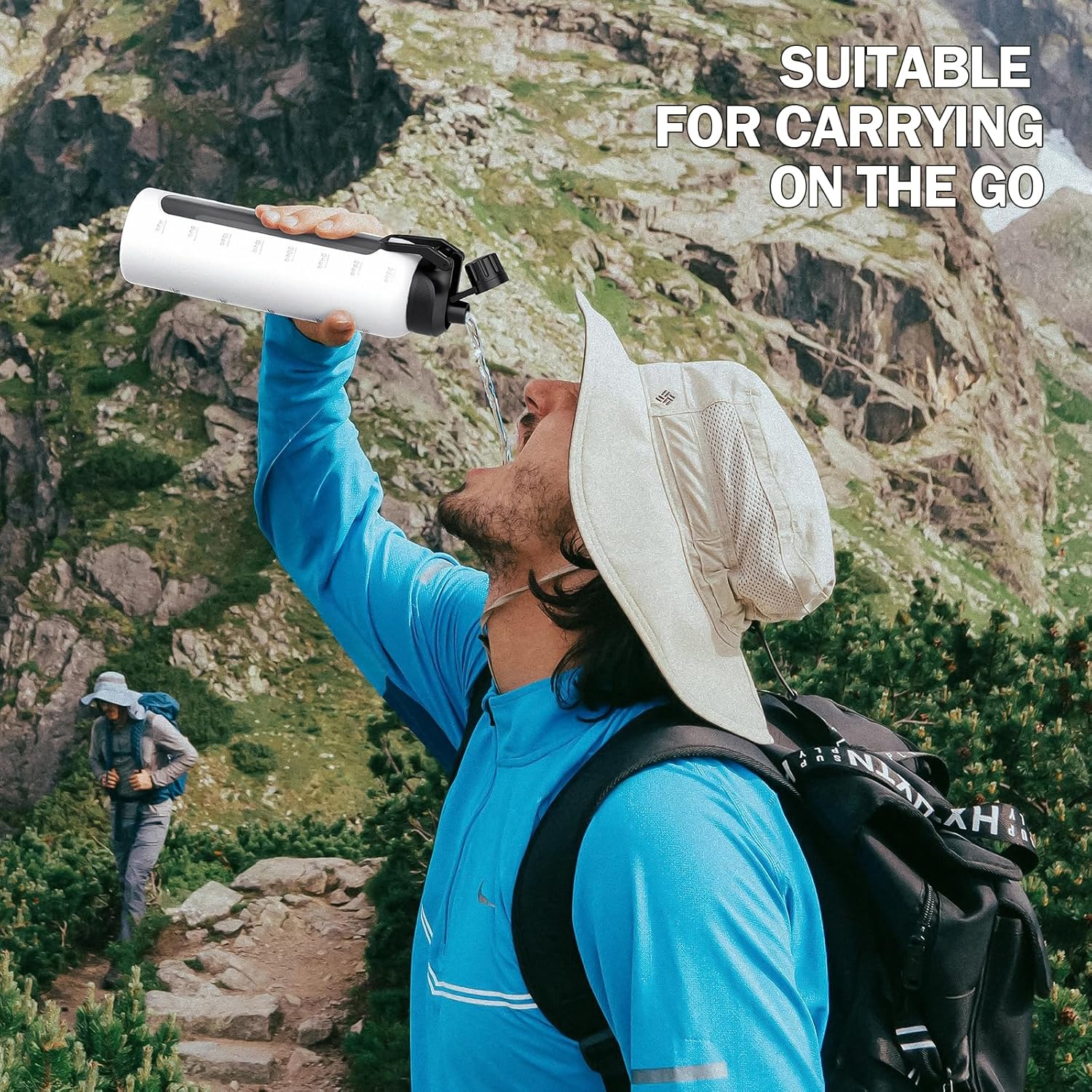 - DURABLE HANDLE & TIME MARKERS- Our premium water bottle with time marker with an ergonomic handle is sturdier than standard designs, ideal for outdoor activities like hiking where it can be securely attached to a backpack. Additionally, our big water bottle features hourly time markers to track daily water intake, supporting your health goals wherever you go.