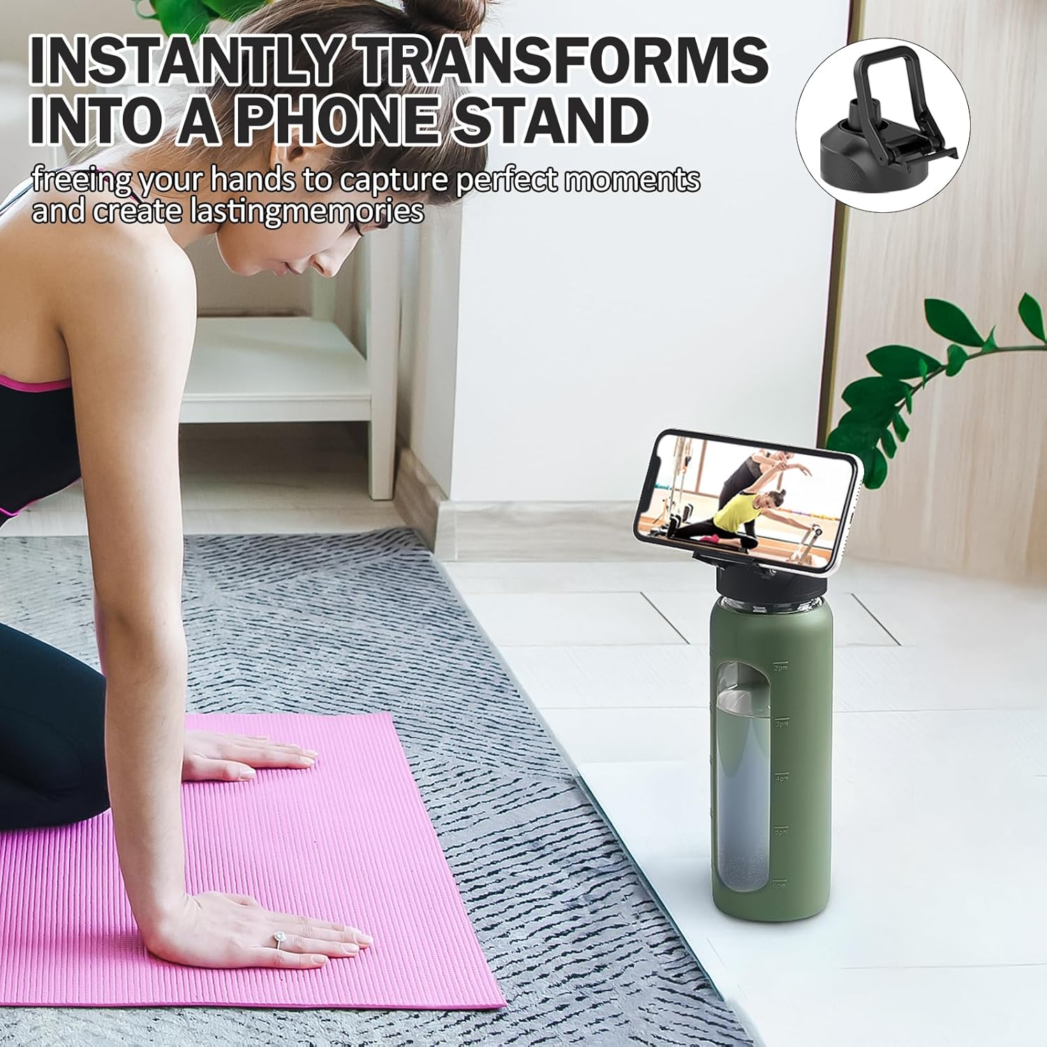 - PHONE STAND & CUP HOLDER FRIENDLY- Choosing the NOLOGLAZIC glass water bottles 32 oz not only keeps you hydrated but also doubles as a convenient phone stand, freeing your hands for capturing perfect moments and other activities such as work and workouts. Moreover, it fits most car cup holders, making it the perfect companion for drivers.