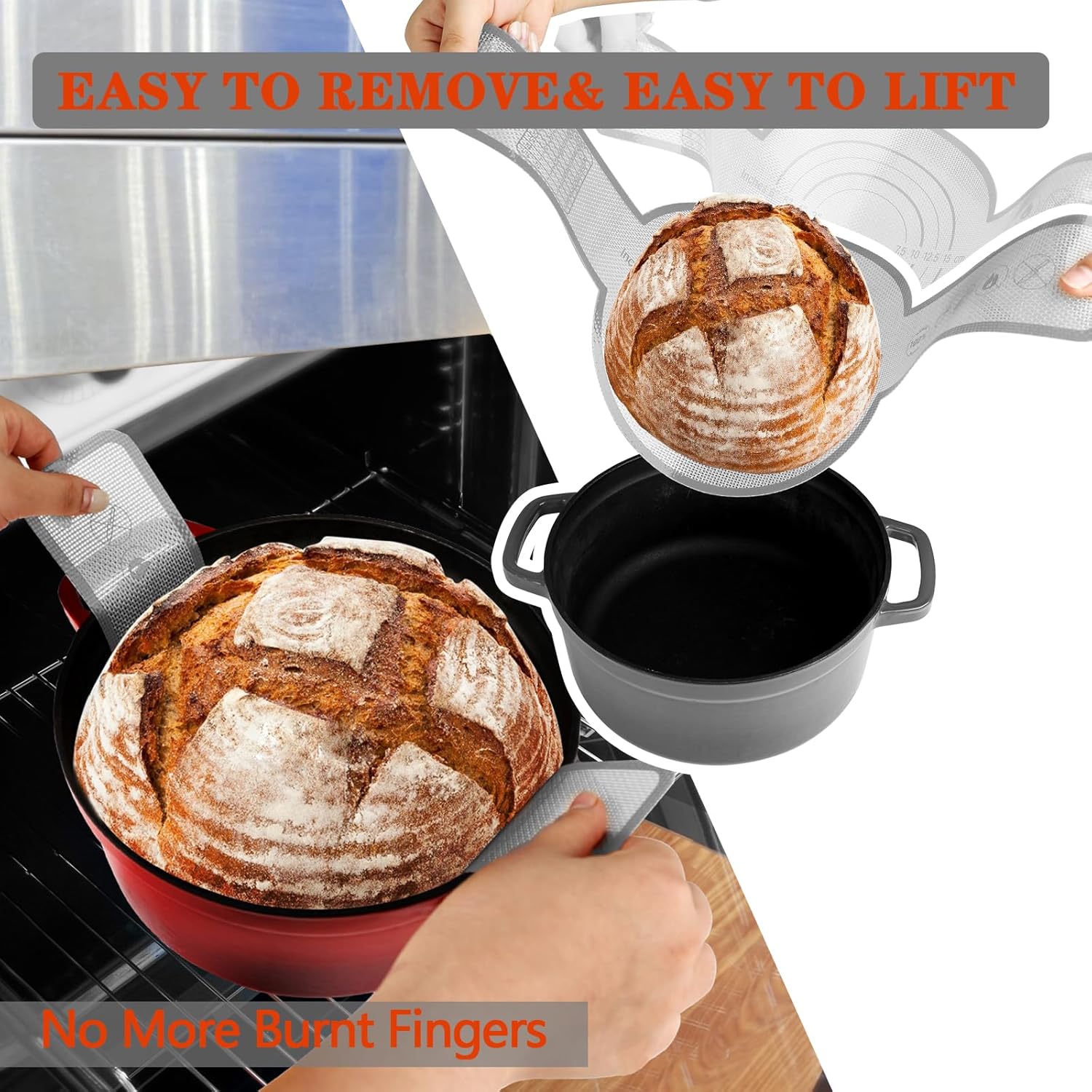 - ๐๐ฑ๐ญ๐ซ๐-๐๐จ๐ง๐ ๐๐ฅ๐ข๐ง๐ -Silicone Bread Sling is a flexible, non-stick baking mat with an extra-long sling that helps you easily and safely transfer dough to hot dutch oven or cast iron pot without the risk of burns.