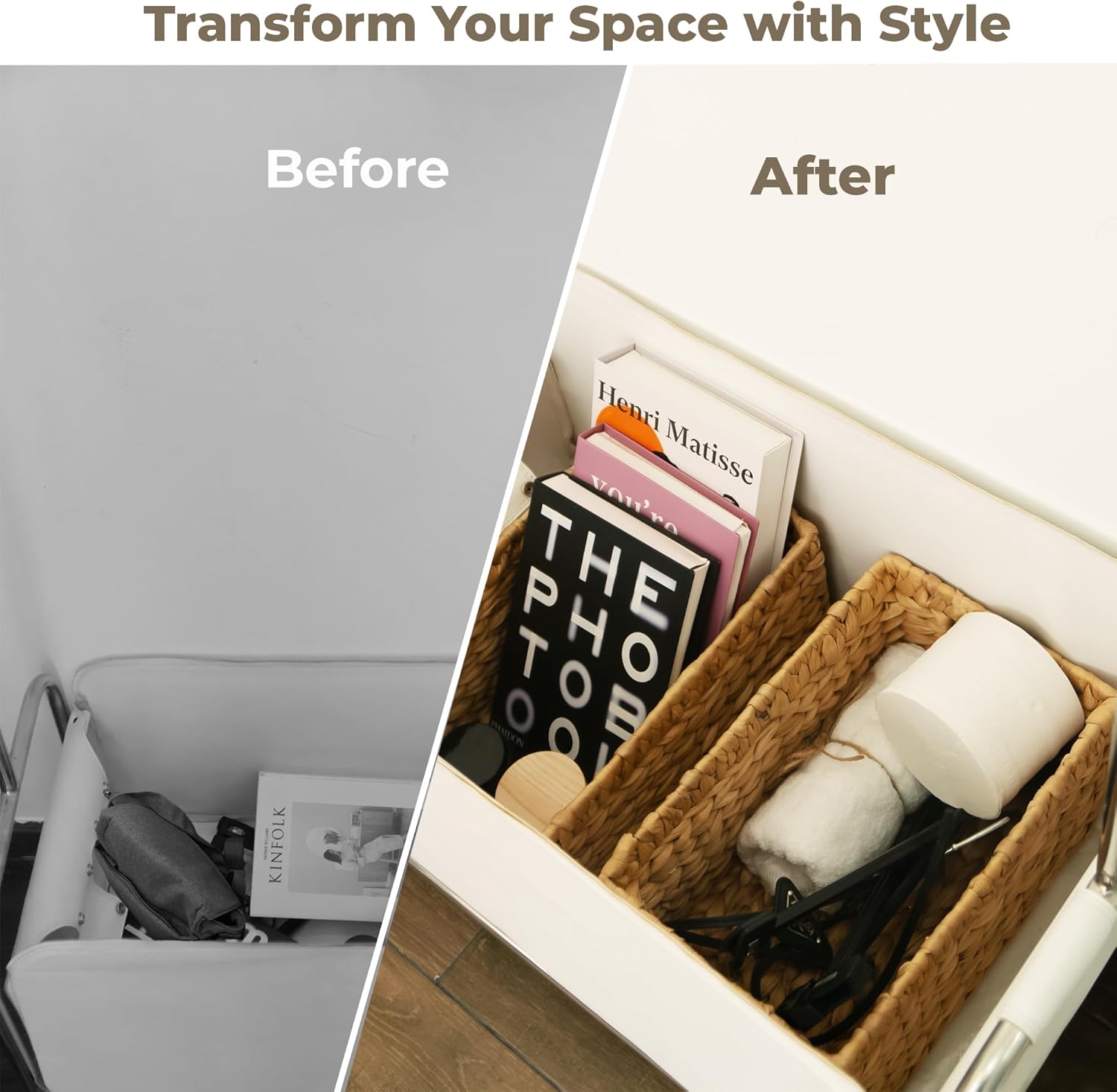 - 🌿[ Pack of 2 Pcs] Designed to fit comfortably on shelves, or for room organizing. Hyacinth wicker storage baskets include two medium-sized woven storage bins (13.0 x 8.25 x 7.0 in). And may vary within 1/4 in due to handwoven.