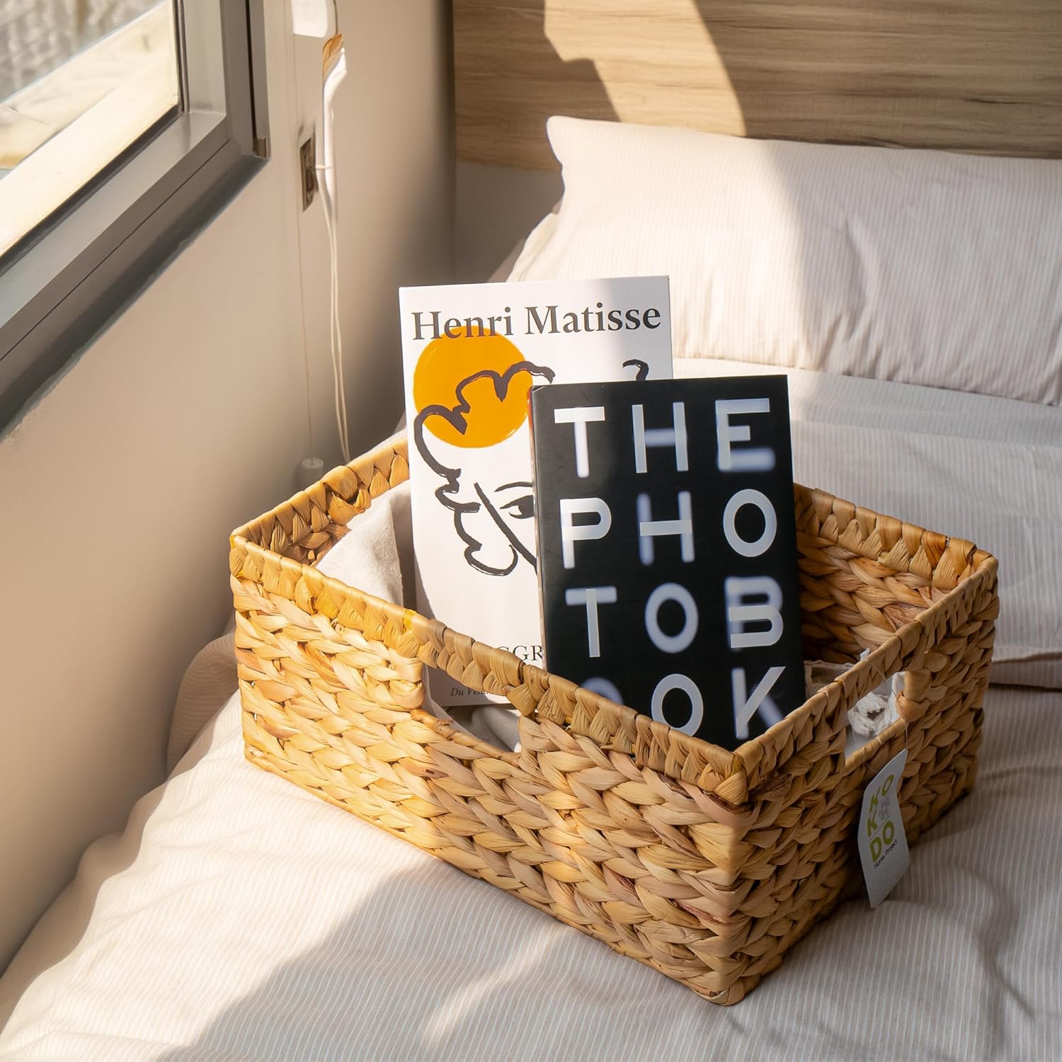 - 🌿[Natural And Sustainable] Made from clean renewable water hyacinth resources, adding an elegant touch to any room. This water hyacinth basket is both eco-friendly and stylish.