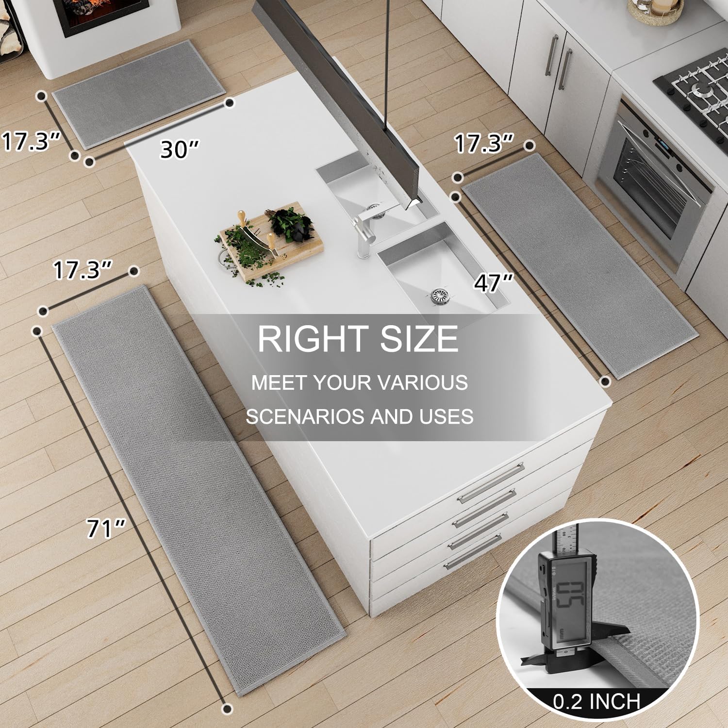 Kitchen Mat 1 PCS, Cushioned Non Slip Rugs for Kitchen Floor, Absorbent Runner Comfort Standing Mats Washable for Kitchen, Office, Home (Grey, 17.3"x47")