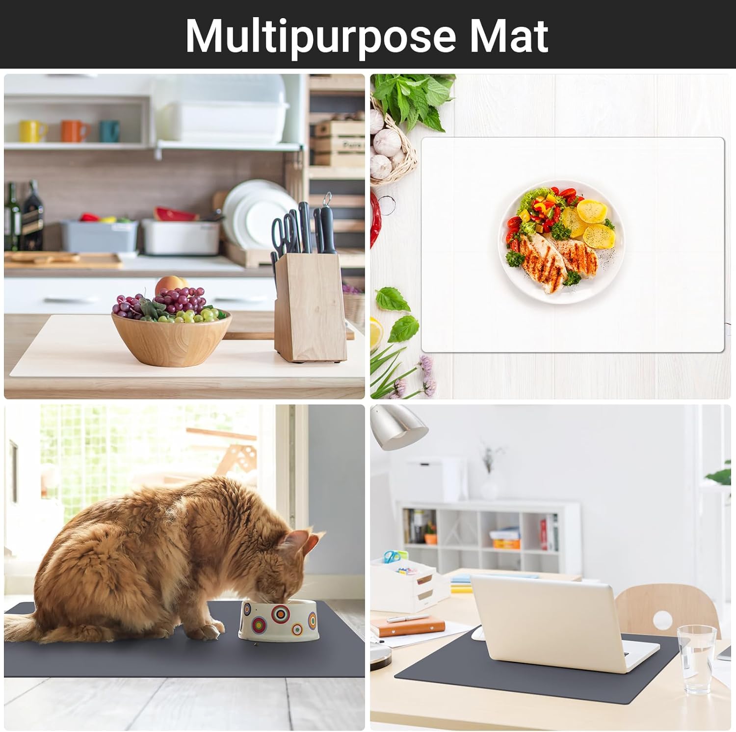 - SURFACE PROTECTOR - Counter mat could protect your coutertop against overspill, drips, water, stains, discolorations, scratches, burn, grease and keep your crafting table away from resin, epoxy, glue, glitter, paint, ink, oil etc. Put it under microwaves, air fryer, induction stove, toaster, espresso machine, oven among other appliances to protect their surface.