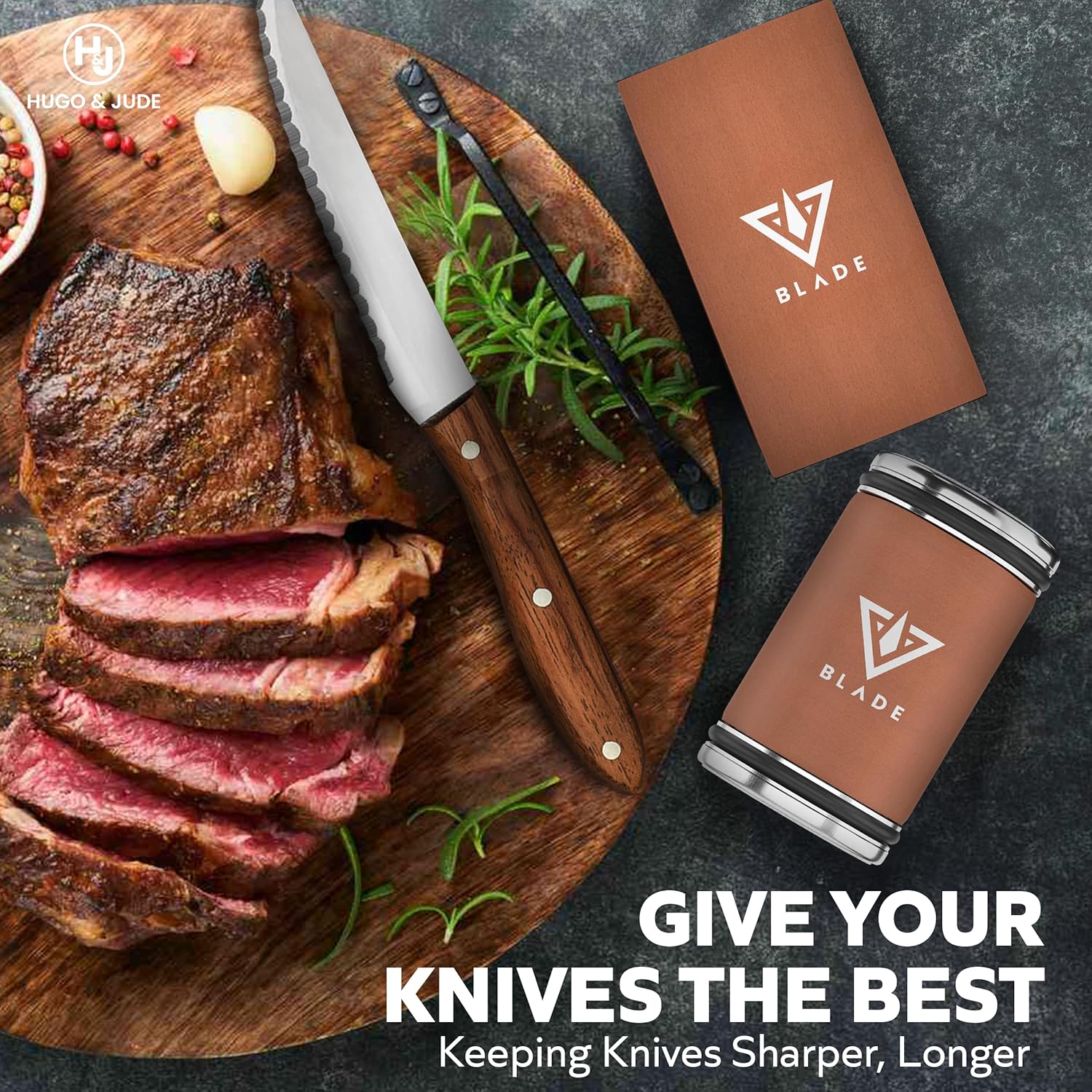 - Professional Precision at Home - Achieve professional-level sharpness with BLADE by Hugo & Jude rolling knife sharpener kit. Simply adjust the knife sharpener roller to your desired angle, from 15° to 20°, to sharpen both Asian and Western knives effortlessly, ensuring flawless cuts every time.